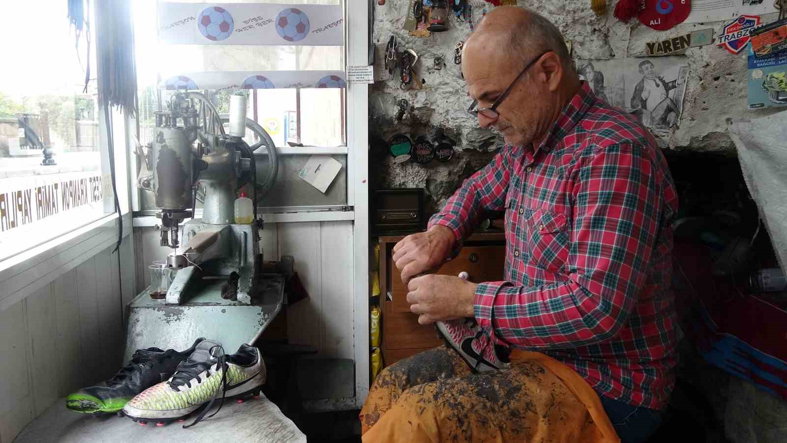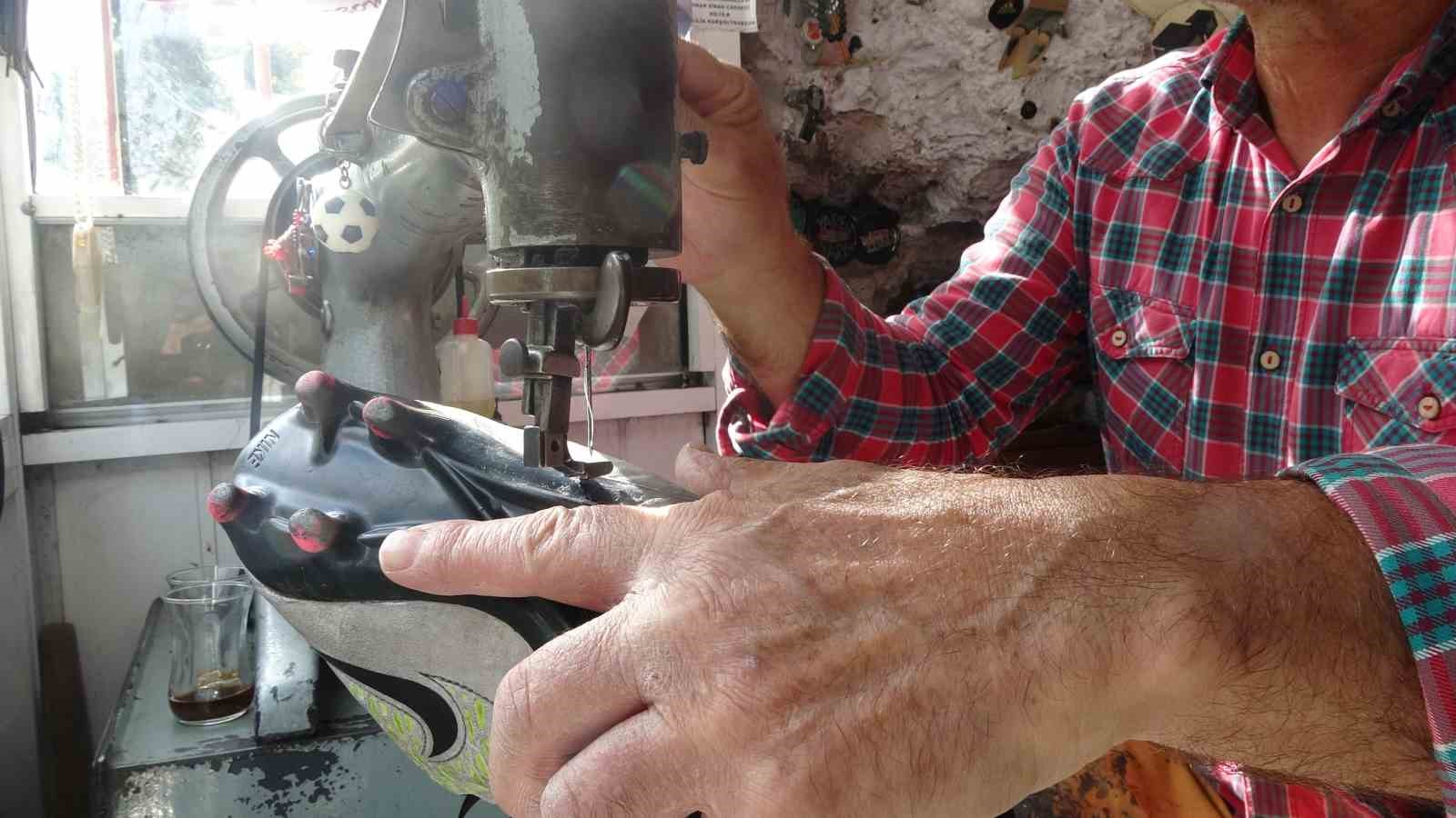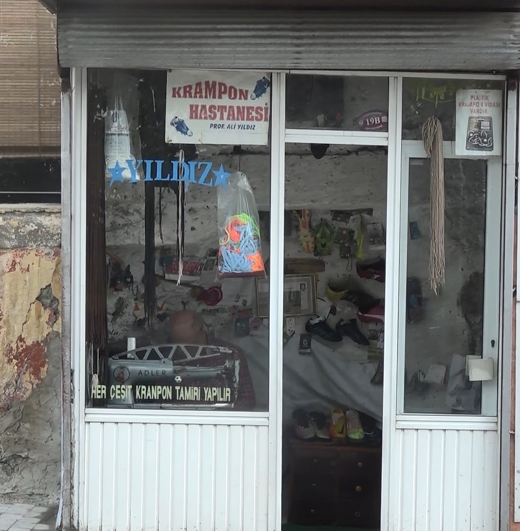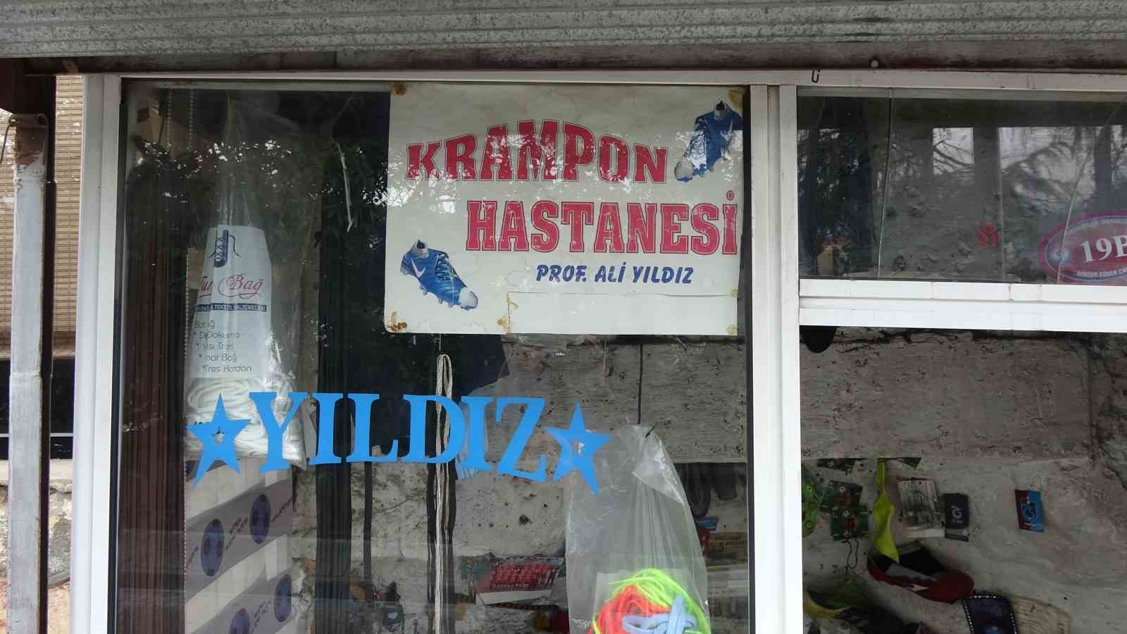 “Krampon Hastanesi” isimli işyerinde sadece krampon tamiri yaptığı için futbol camiasında tanınan Ali Yıldız, ilkokul üçüncü sınıfta başladığı krampon tamirini aralıksız sürdürdüğünü söyledi.