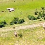 Sürüyü gözetleyen kurtların o anları dron kameraya yansıdı. Kurtların pususu başarısızlıkla sona erdi.