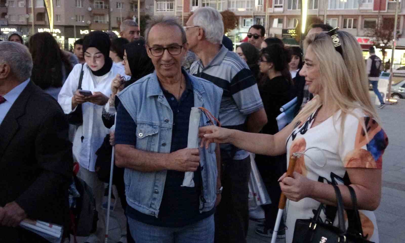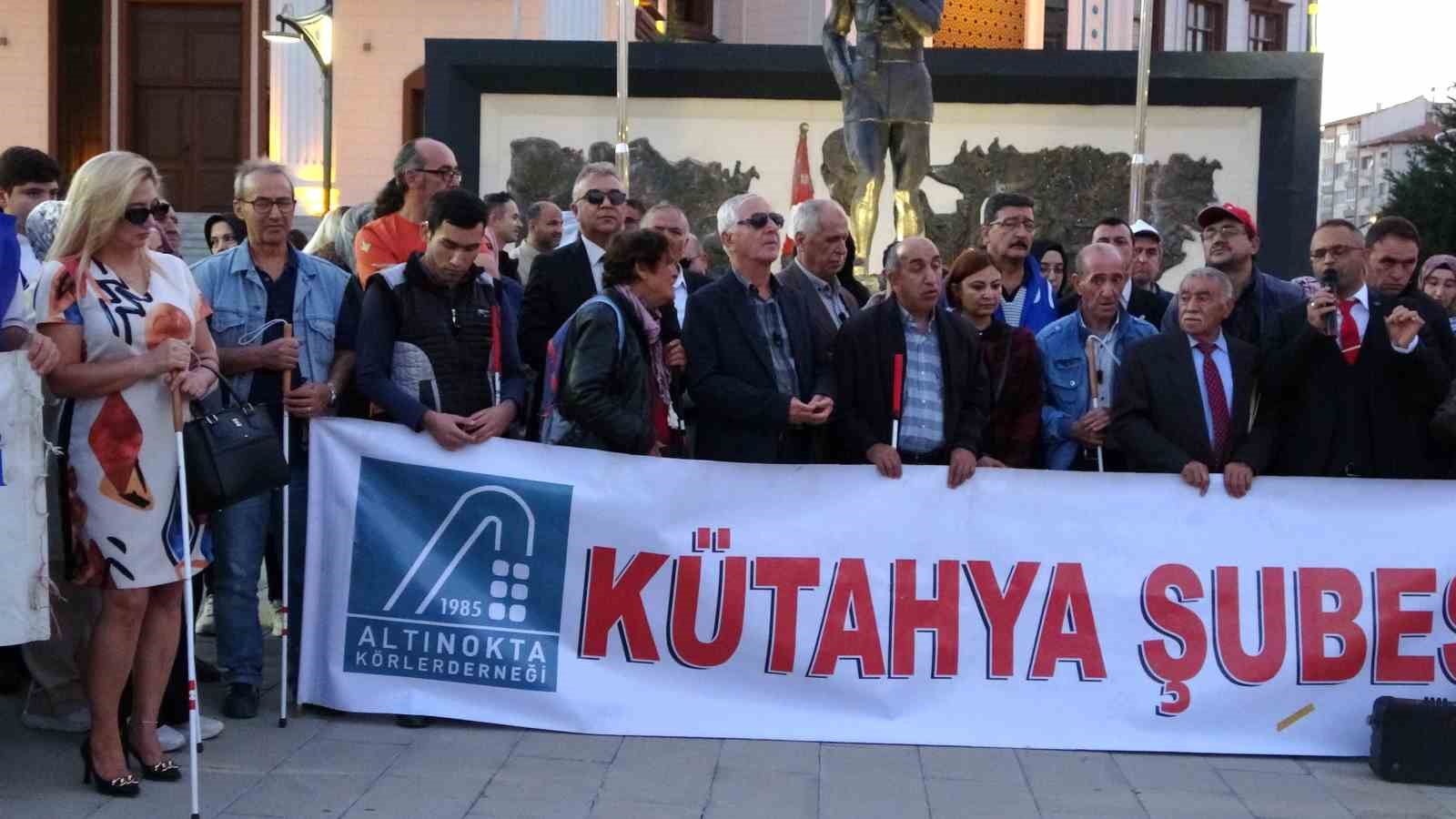 Kütahya Altı Nokta Körler Derneği tarafından düzenlenen ve birçok STK’nın da destek verdiği farkındalık yürüyüşü belediye hizmet binası önünden başladı. Görme engelliler, düdük çalarak Atatürk Bulvarı üzerinden Zafer Meydanı’na doğru yürüyüşü geçti. Görme engellilerin farkındalık yürüyüşüne vatandaşlarda alkışlarla destek verdi. Zafer Meydanı’nda grup adına basın açıklamasını yapan Altı Nokta Körler Derneği Başkanı İsmail Barış, “Ülkemizde yaklaşık ülkemiz nüfusunun yüzde 10’u engelli vatandaşlarımızdan oluşturmaktadır. O engelli vatandaşlarımızın yüzde 10’luk kısmının yüzde 2’lik kısmını ise görme engelliler oluşturmaktadır. Görme engelli doğuştan veya sonradan, kısmen veya tamamen görme yetkisini kaybeden kişidir. Evet, bizler görme engellilere rağmen bu hayatın içerisinde, var olma mücadelesinde, belki engelleyemeyen vatandaşlara göre bir kat daha fazla mücadele veriyoruz. Ancak unutulmasın ki, bizler için gerekli çalışmalar yapıldığında, bizlere yeterli destek verildiğinde, inanın bizler de toplumda aktif ve etkin bir şekilde yer alabiliriz. Bildiğimiz üzere bu görme engellilerin yaşamış olduğu başlıca sıkıntılar var. Bunların hepsinin ana şartlarını aslında erişilebilirlik oluşturmaktadır. Peki erişilebilirlik nedir? Erişilebilirlik, açık alanların, mimari yapıların, ulaşımın ve bilgiye ulaşımın bütün kesimlerce, özellikle engelliler tarafından ulaşılabilmesidir. İşte bunlar üzerine çalışmalarımızı biraz daha yoruğlaştırabilirsek, biraz daha hep birlikte bu hayatı paylaşabilirsek, inanın önümüzdeki bütün engelleri aşabiliriz” dedi. Örneğin, yaşamış olduğumuz bu güzel şehirde, kuruluşun ve kurtuluşun şehri, çini diyarı Kütahya’da yaşamaktan mutluyuz. Bizler için sarı çizgili kılavuz yollar yapılıyor. Ama üzülerek söylüyoruz ve gerçekten üzülüyoruz. Bu sarı çizgili yolların üzerine engelleyemeyen vatandaşlarımız maalesef araçlarını fark ediyorlar. Esnaflarımız maalesef üzerlerine malzemelerini koyuyorlar. Bu da inanın bizi ziyadesiyle üzüyor. Unutmayın ki bu da bir kul hakkıdır. Her şeye rağmen bu şehirde yaşamaktan gerçekten çok mutluyuz” dedi.