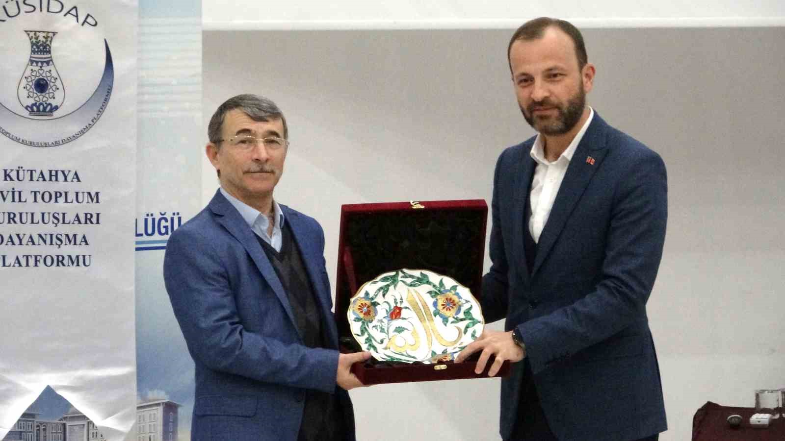 Konferans sonrası Tüzün’e, Kütahya Sivil Toplum Kuruluşları Dayanışma Platformu (KÜSİDAP) Başkanı Ülfet Balon, İşbilir’e de AK Parti Kütahya Milletvekili İsmail Çağlar Bayırcı tarafından hediye takdim edildi.