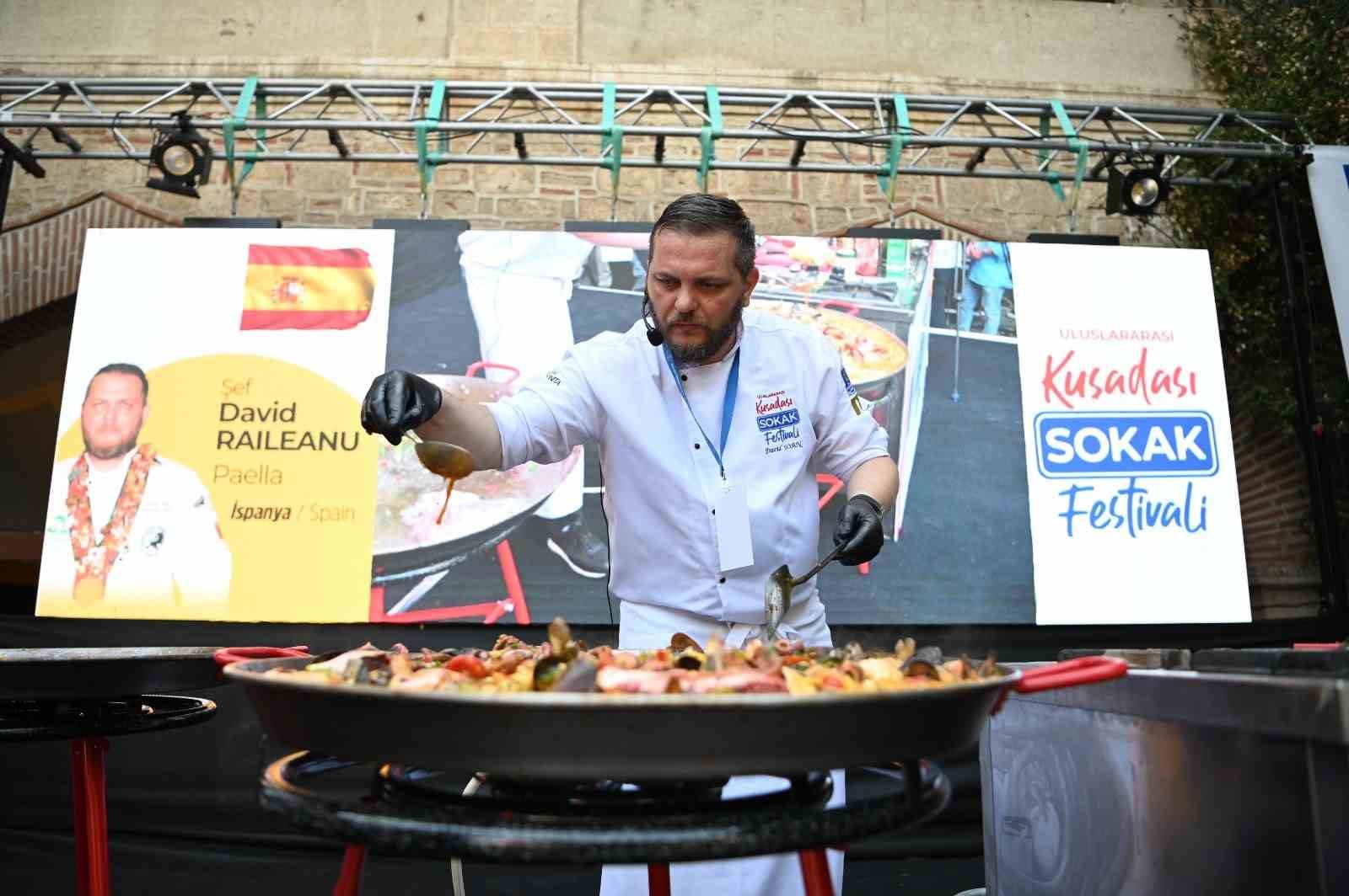Kuşadası Belediyesi, Kuşadası Altın Güvercin Kültür Sanat ve Tanıtım Vakfı (KUSAV) tarafından, Ayhan Sicimoğlu’nun katkısıyla bu yıl üçüncü kez düzenlenen Uluslararası Kuşadası Sokak Festivali, karnavalları aratmayan ilk gününün ardından ikinci gününde de muhteşem etkinliklere ev sahipliği yaptı. Festivalin ikinci günü organizasyona İspanya’dan katılan ünlü şef David Raileanu eşliğinde gerçekleşen “Paella” atölyesi ile başladı.