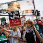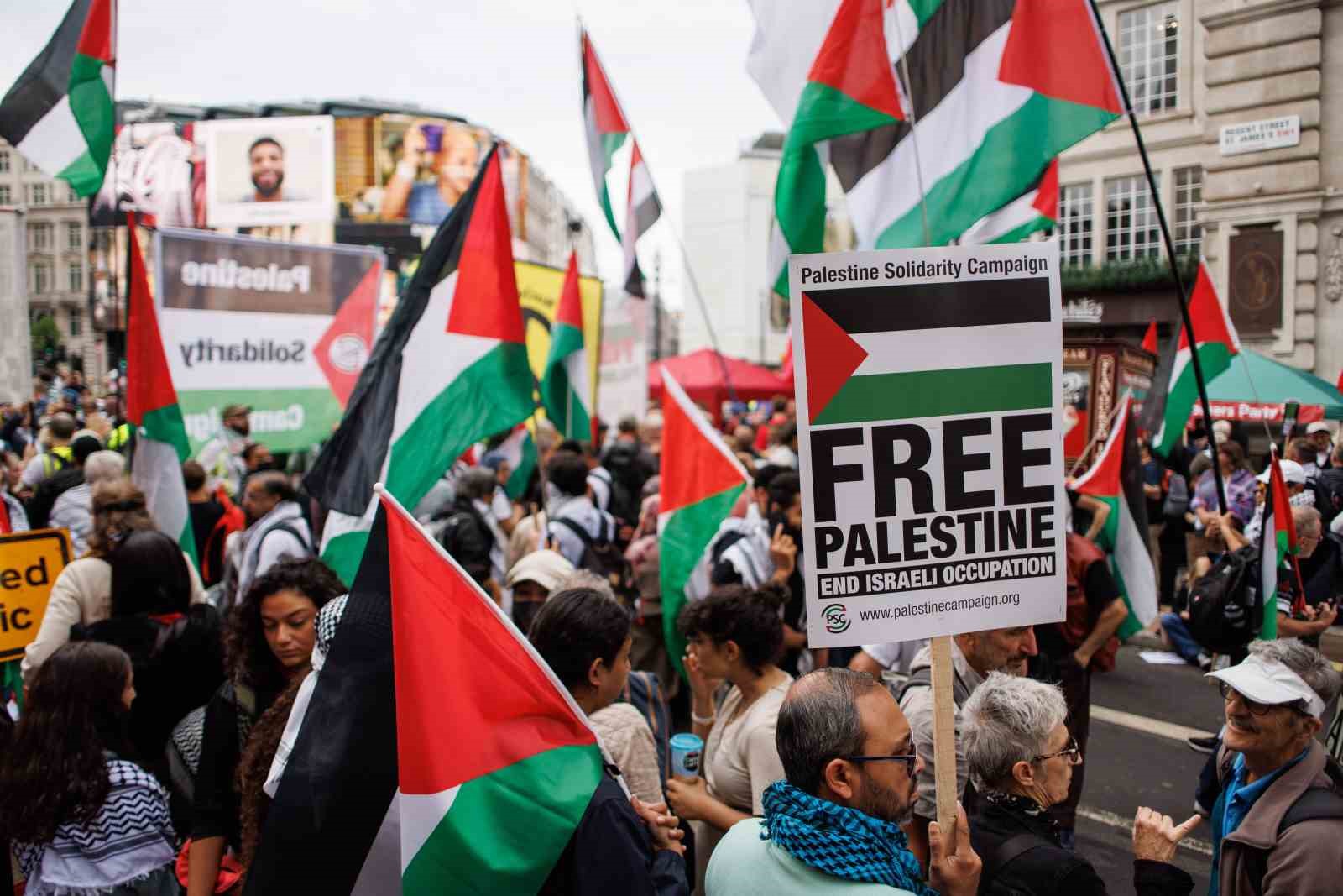 İngiltere’nin başkenti Londra’da düzenlenen ve binlerce kişinin katıldığı Filistin’e destek yürüyüşünde “Nehirden denize Filistin özgür olacak” sloganları atıldı.