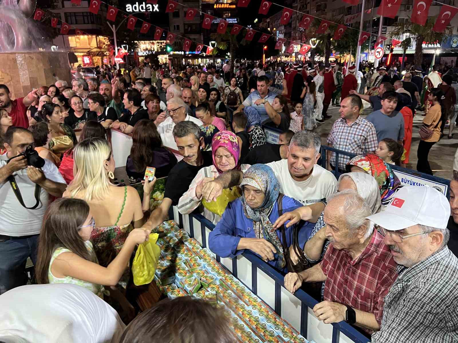 Büyük ilgi gören etkinlikte vatandaşlar üzüm ve şıra alabilmek için uzun kuyruklar oluşturdu. Etkinlikte toplam 3 ton yaş üzüm, 2 bin paket kuru üzüm ve 350 litre şıra dağıtıldı.