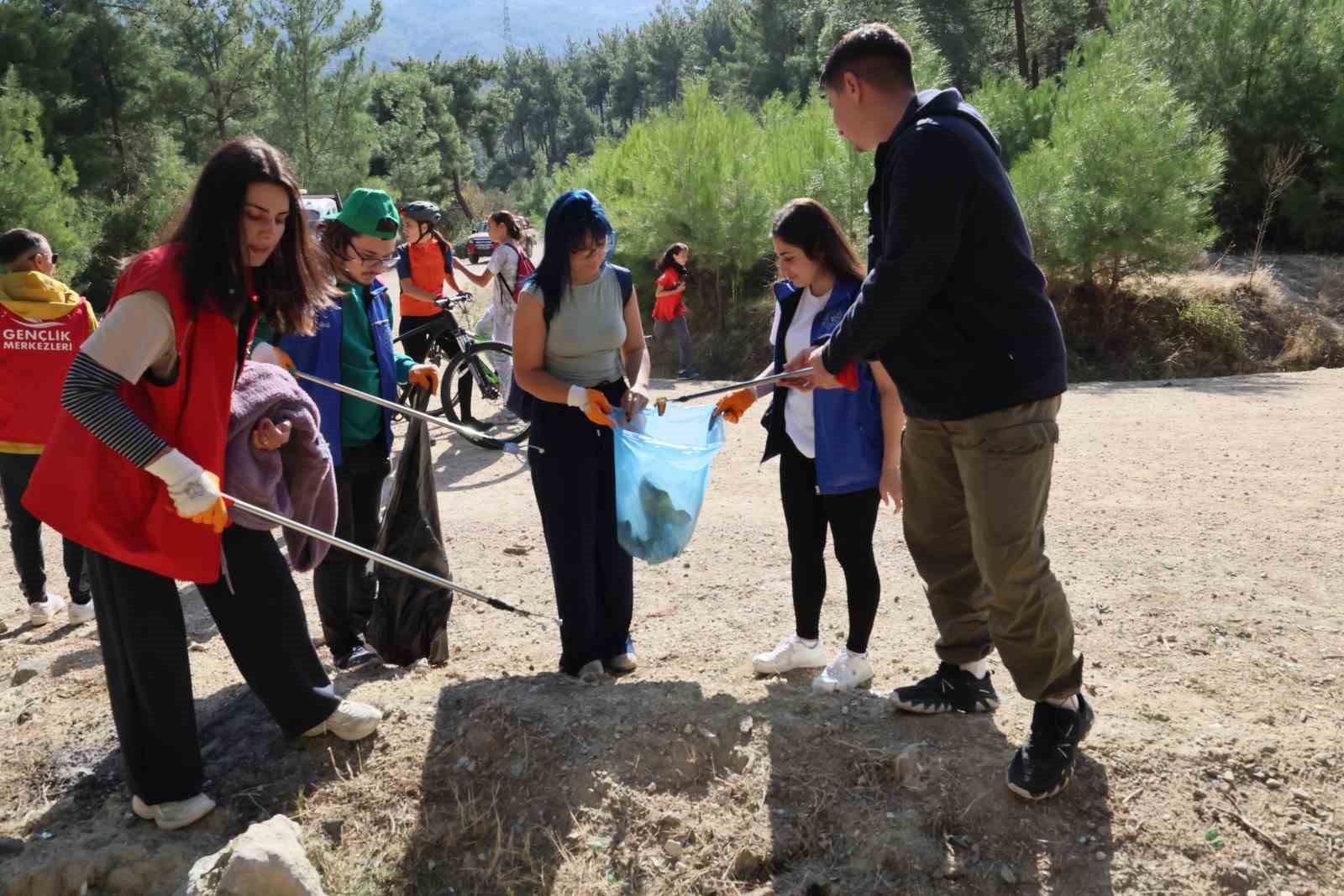 Manisa’da Gençlik ve Spor Bakanlığı ile Tarım ve Orman Bakanlığı “Ormanlar İçin El Ele Veriyoruz” etkinliği kapsamında ormanlık alanlarda temizlik çalışması yapıldı.