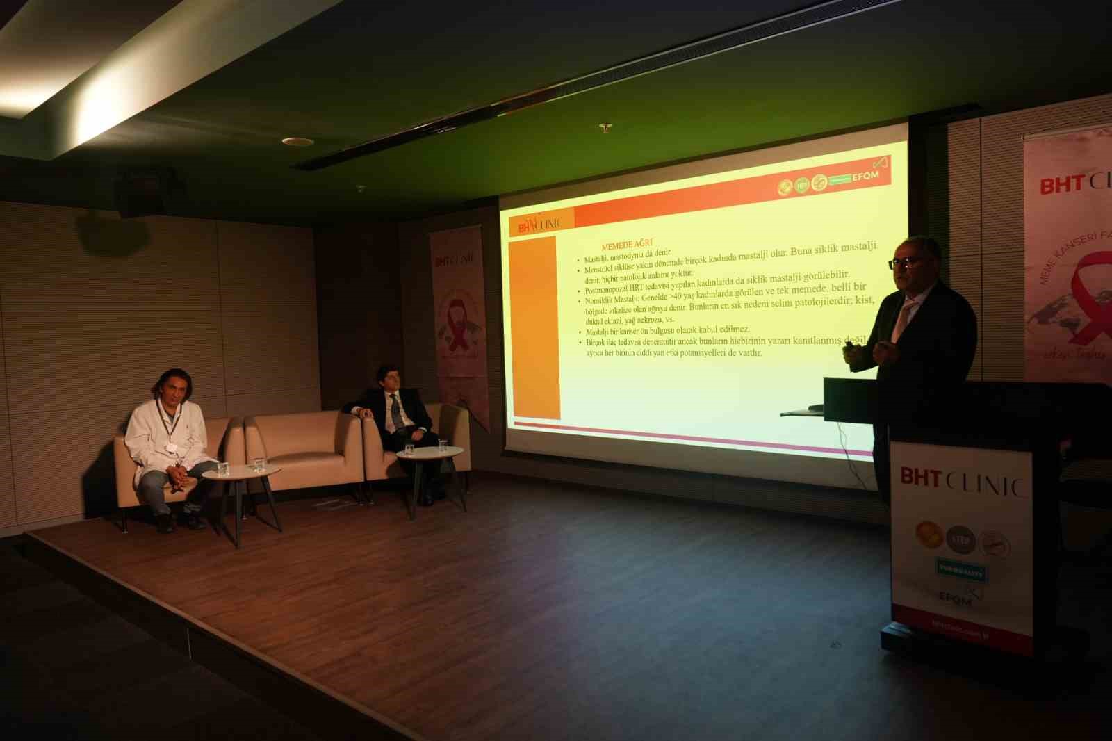 BHT CLINIC İstanbul Tema Hastanesi’nde ‘Meme Kanseri Farkındalık Etkinliği’ düzenlendi. Pembelere bürünen ve çeşitli workshoplar içeren etkinlikte uzmanlar; meme kanseri tedavi yöntemleri, mamografi, ultrason ve manyetik rezonans (MR) görüntüleme, ileri ve güncel tedavi yöntemleri, kendi kendine meme muayenesi, meme kanseri sonrası psikolojik destek konuları hakkında tek tek bilgilendirdi.