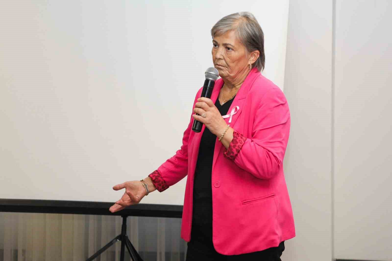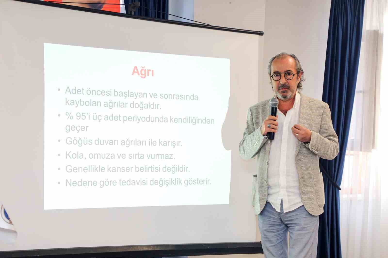 Op. Dr. Erol Aksaz ise, meme hastalıklarının ve kanserinin belirtilerini örneklerle anlattı. Her 8 kadından 1’inin meme kanserine yakalandığının altını çizen Aksaz, kanserin erken evrede fark edilmesinin önemini vurgulayarak, “Erken teşhis edilirse hayatta kalma şansı artıyor, meme kaybı riski azalıyor. Mamografi çektirmek acısız bir işlemdir ve zararlı değildir. Ailede kanser geçirmiş bir kişi var ise, gen testinin yapılması gerekmektedir. En iyisi de her yıl düzenli kontrollerinizi yaptırın.”