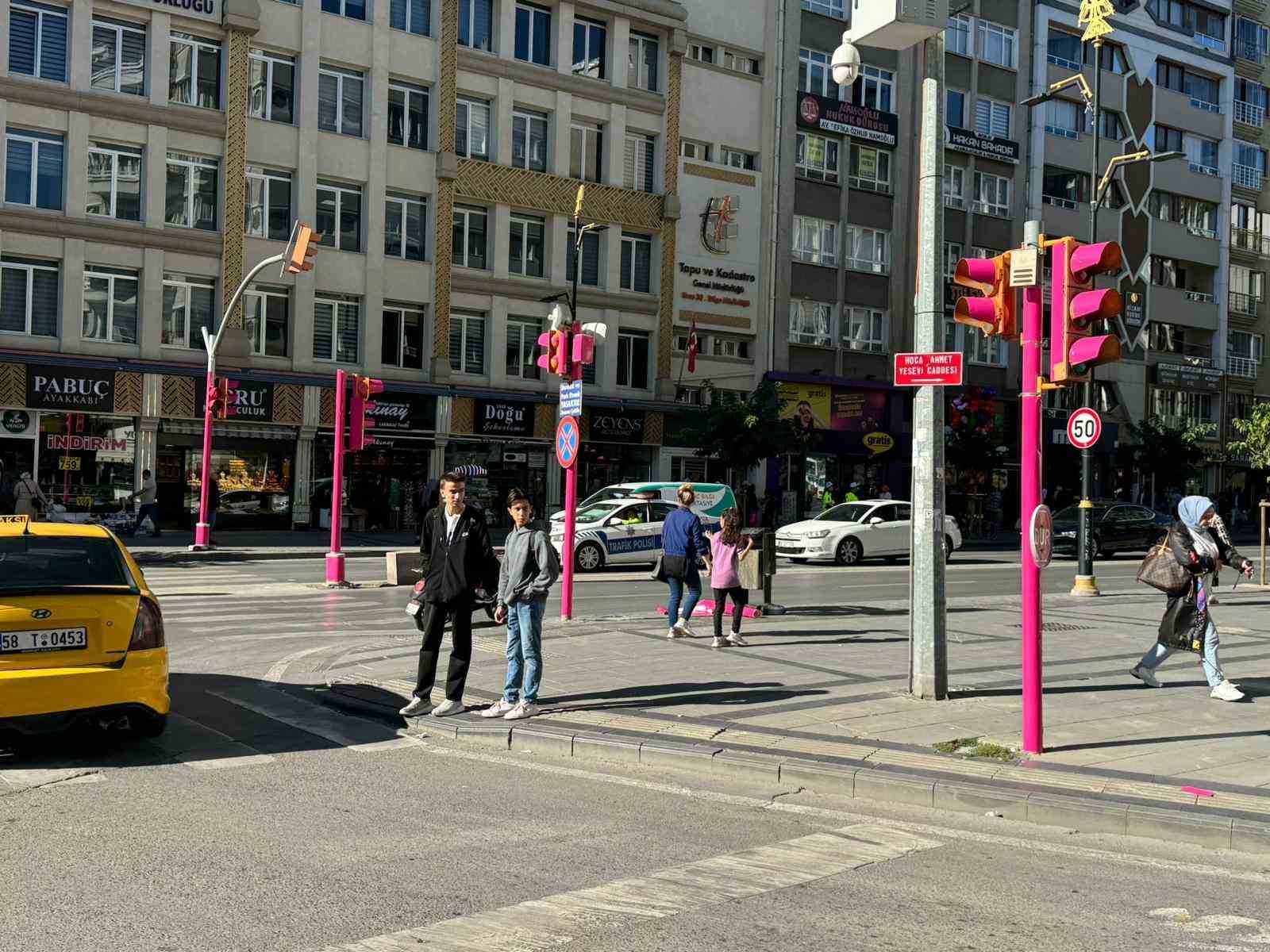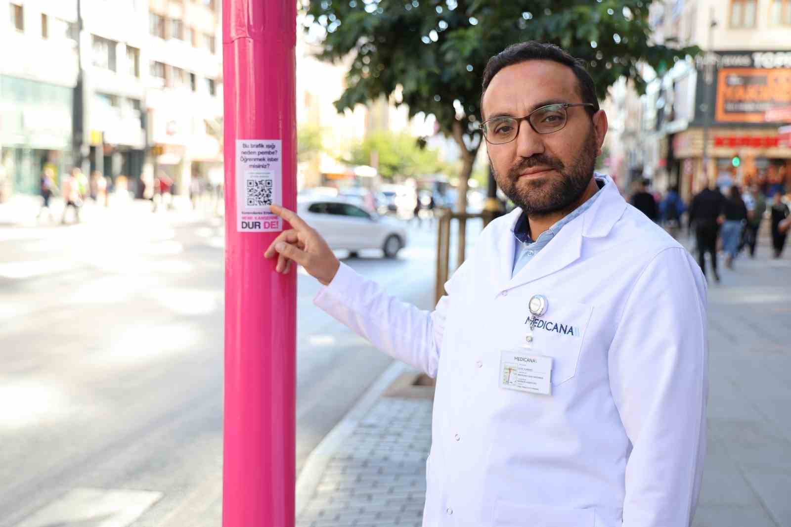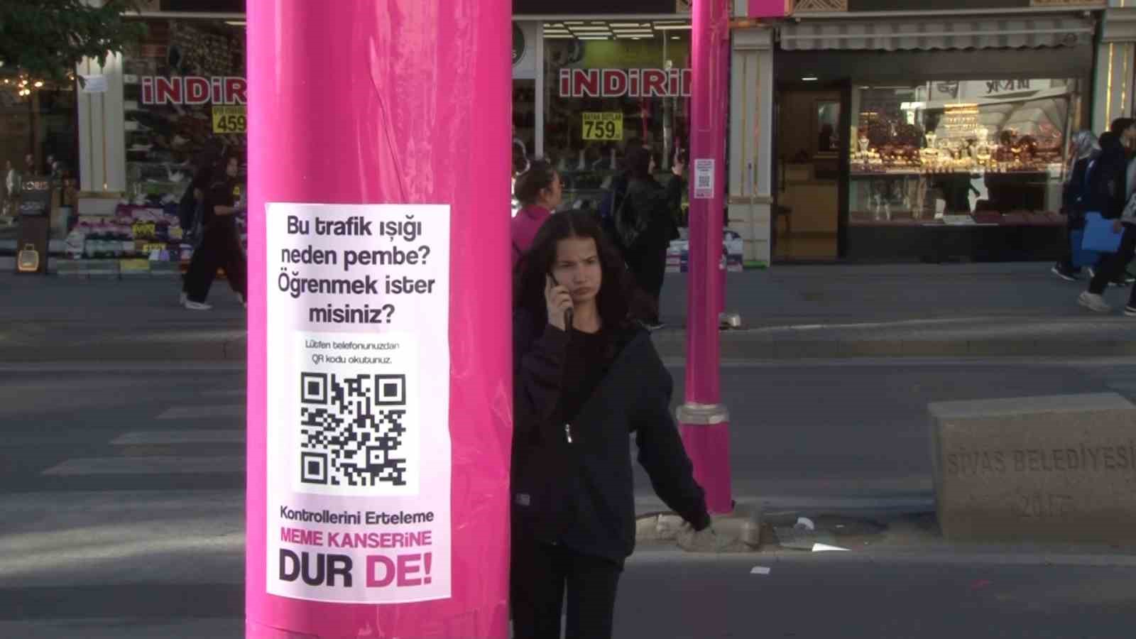 Sivas’ta, 1-31 Ekim Meme Kanseri Farkındalık ayına dikkat çekmek amacıyla trafik sinyalizasyon direkleri pembe renkle kaplandı.