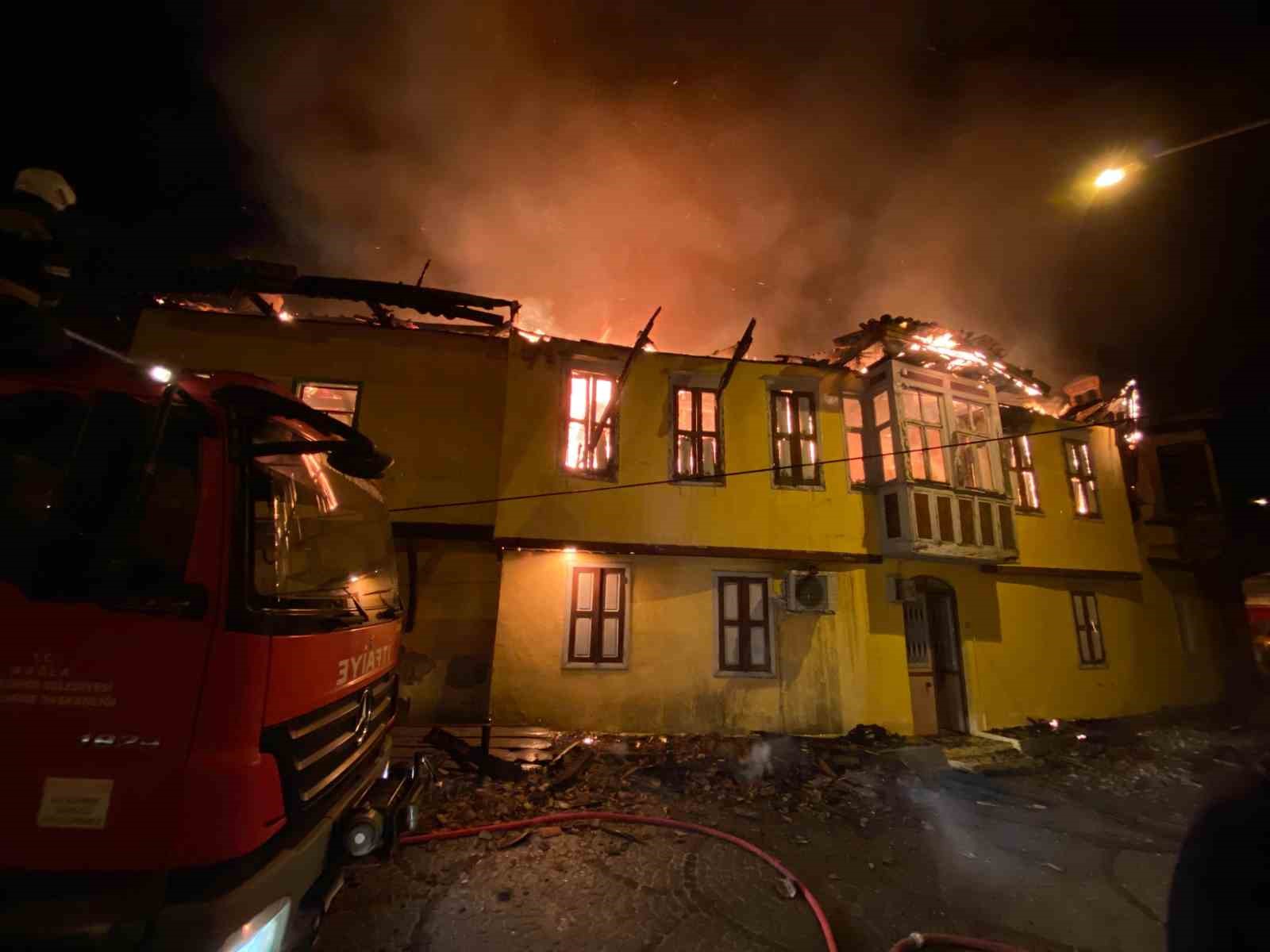 Yangın, Hacı İlyas Mahallesi Sodra Sokak’ta gece saatlerinde meydana geldi. İddialara göre, F.Ç. (37) isimli şahsın evinde henüz bilinmeyen bir nedenle yangın çıktı. Alevleri fark eden vatandaşlar durumu 112 Acil Çağrı Merkezi’ne bildirdi. Alevler kısa sürede büyüyerek yan eve de sıçrarken, İhbar üzerine bölgeye sağlık, polis ve itfaiye ekipleri sevk edildi. Olay yerine gelen Muğla Büyükşehir Belediyesi İtfaiye Daire Başkanlığı ekipleri yangına müdahale etti. Ekiplerin uzun uğraşları sonucu alevler kontrol altına alındı. Yangında 2 ev tamamen yanarak kullanılamaz hale geldi. Yangını F.Ç.’nin kendisinin çıkarttığı iddiaları üzerine polis ekipleri şahsı gözaltına alarak emniyete götürdü.
