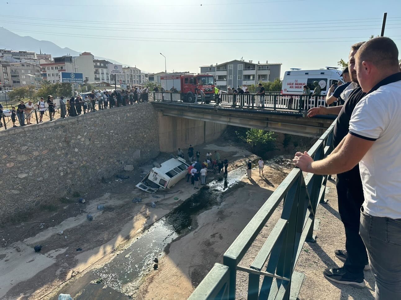 Bursa’nın Kestel ilçesinde kontrolden çıkıp dereye uçan minibüsün son görüntüsü ortaya çıktı. Dereye düşme anı saniye saniye kameraya yansıdı.