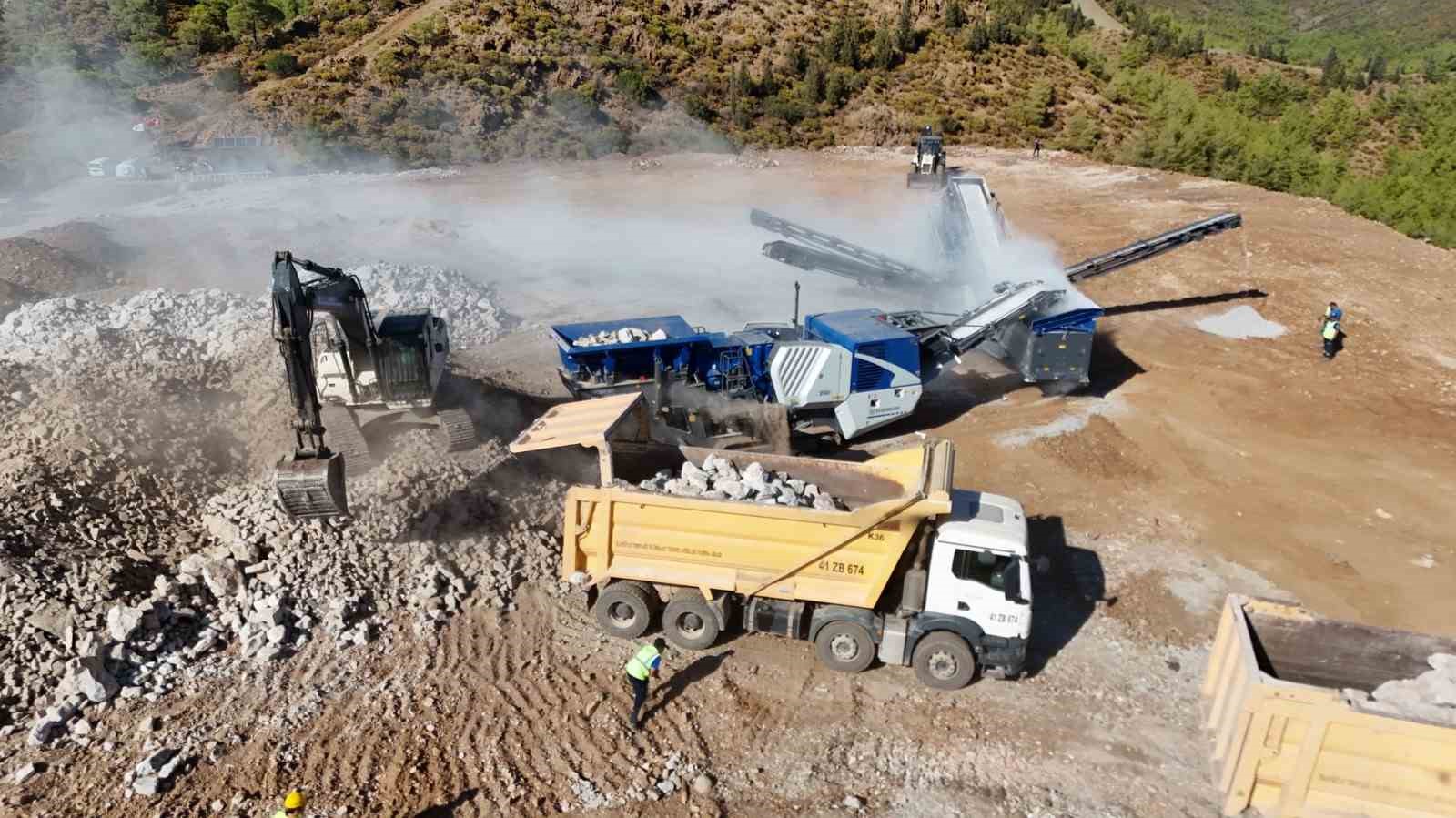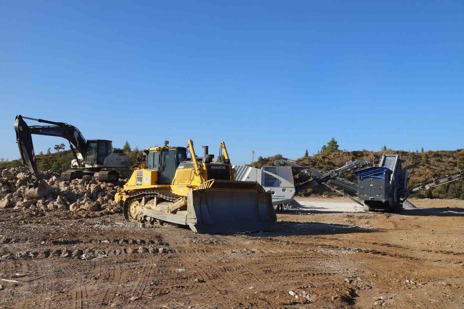 Doğal rezervlerin azaldığı günümüzde hammaddenin geri dönüşümü büyük bir önem taşıyor. Muğla Büyükşehir Belediyesi de bu bilinçle, hafriyat, inşaat ve yıkım çalışmaları sonucu ortaya çıkan atıkların doğayı kirletmesini engelleyerek geri dönüşüm sağlıyor. Bu atıklar, belediyenin belirlediği sahalarda bertaraf ediliyor. İl genelinde yapılan inşaat çalışmaları sonucu ortaya çıkan hafriyat malzemeleri, Büyükşehir Belediyesi’nin kurduğu 3 mobil konkasör şantiyesinde işlenerek dolgu ve asfalt malzemesine dönüştürülüyor. Bu tesisler, hem çevreyi koruyor hem de belediyenin bütçesine katkı sağlıyor.