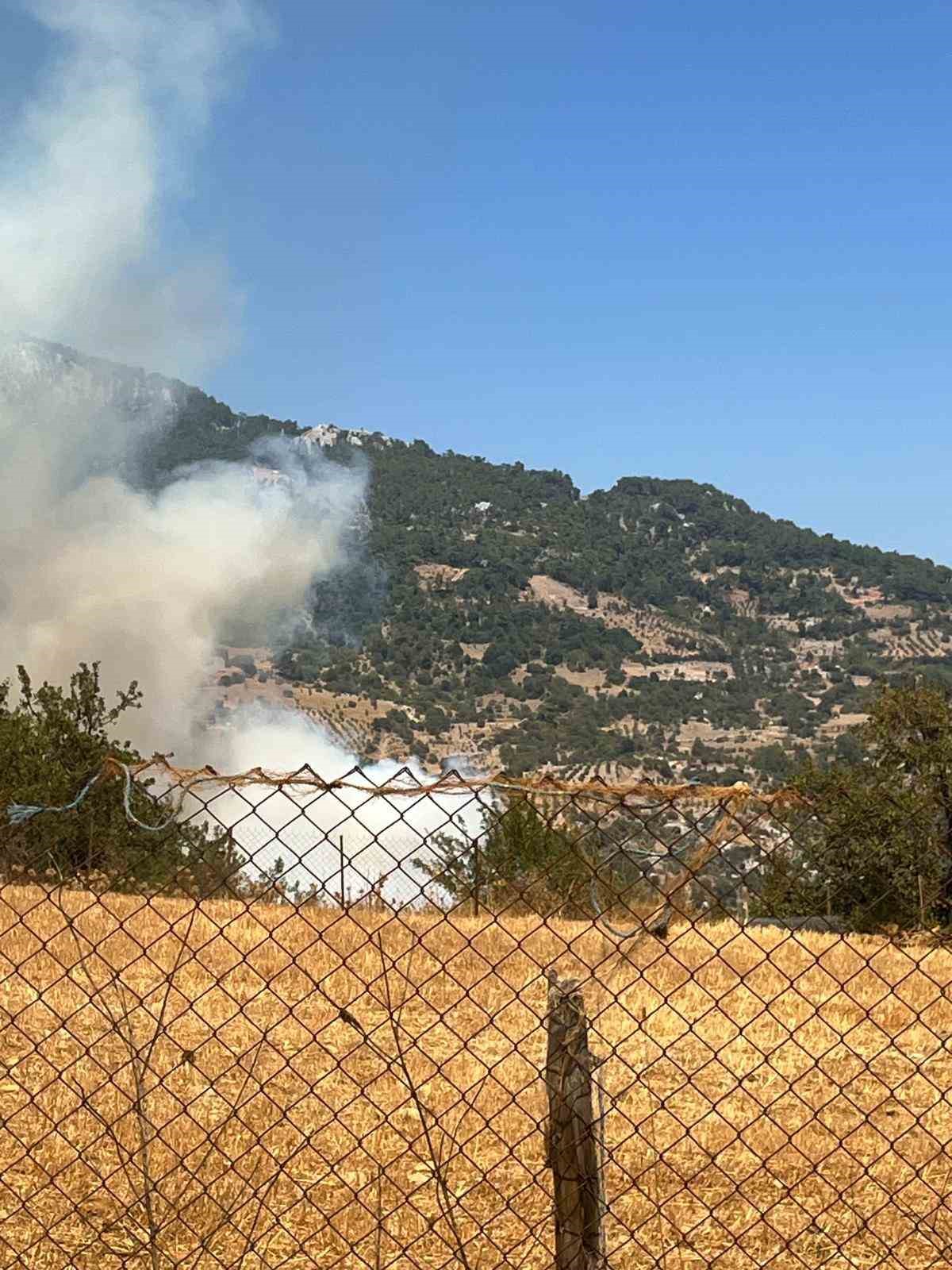 Muğla’nın Menteşe ilçesinde sarp arazide ormanlık alanda çıkan yangın rüzgarın etkisi ile büyürken, yangına havadan ve karadan yoğun müdahale sürüyor.