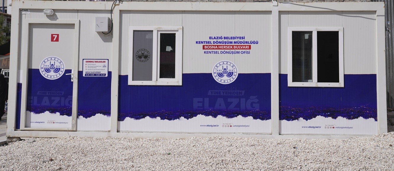 Elazığ Belediyesi, Nailbey Mahallesi Kentsel Dönüşüm Ofisi’nin ardından İstasyon Caddesi Bosna Hersek Bulvarı Kentsel Dönüşüm Ofisi’ni de hizmete açarak Akpınar, Nailbey, Çarşı ve Sarayatik Mahalleleri için vatandaşların taleplerini toplamaya başladı. Depreme dayanıklı modern bir şehir hedefi doğrultusunda kentsel dönüşüm çalışmalarını sürdüren Elazığ Belediye Başkanı Şahin Şerifoğulları’na teşekkür eden mahalle muhtarları, Elazığ Belediyesi’nin başlatacağı çalışmaların, vatandaşlar için bir fırsat olduğunu vurguladı.
