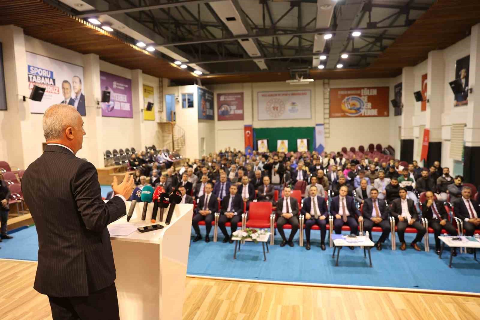 Beden eğitimi öğretmenlerinin sorumluluğunun çok büyük olduğunun altını çizen Çakır, “Çocukların en sevdiği dest beden eğitimidir. Eğer siz o çocukları oradan ne kadar hazırlarsanız, diğer branşlarda o kadar başarılı olur. 100 binden fazla çocuğumuzun yetenekli olmadığı hiçbir branş olamaz. Allah tüm çocukları eşit yaratmıştır. Yeter ki siz bu yeteneği keşfedin. Muş geçen yıl güzel bir ivme yakaladı ve bunu daha yukarıya taşıyacağız. Öğrenci sayımıza göre hala gerilerdeyiz. Muş’u kesinlikle ilk 10’a gelmesi lazım. Çünkü burada çocuklarımızın spordan başka sosyal anlamda vakit geçirecekleri başka bir faaliyetlerimiz yok. Spor, çocuğu zinde tutar, fit tutar, ona takım disiplinini öğretir, yardımlaşma öğretir, arkadaşlığı, dostluğu öğretir, bir heyecan oluşturur” şeklinde konuştu.