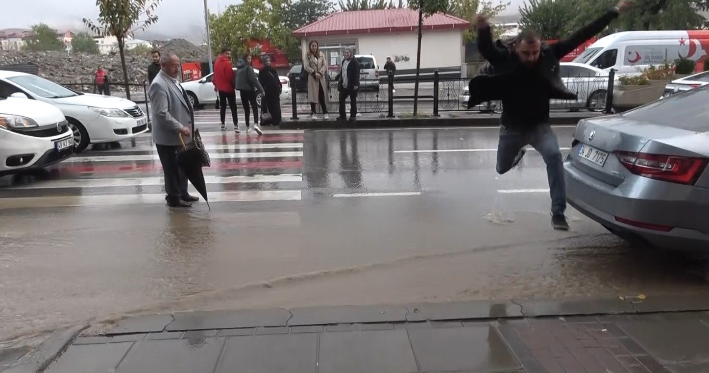 Yağış sırasında, özellikle ana yollar ve ara sokaklar su altında kalırken, okuldan çıkan öğrenciler ve yaşlılar, su birikintilerinin olduğu yerleri geçmekte zorluk yaşadı.