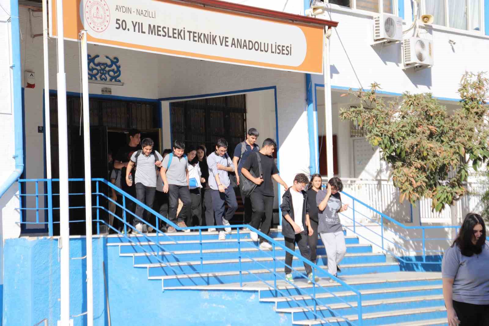 Nazilli Belediyesi bünyesinde faaliyet gösteren Nazilli Afet ve Acil Durum (NAFAD) ekibi, Nazilli 50. Yıl Ticaret Meslek Lisesi öğrencilerine yönelik afet farkındalık eğitimi ve deprem tatbikatı düzenledi. Etkinliğe Nazilli Belediye Başkanı Ertuğrul Tetik de katılarak, tatbikata destek verdi.