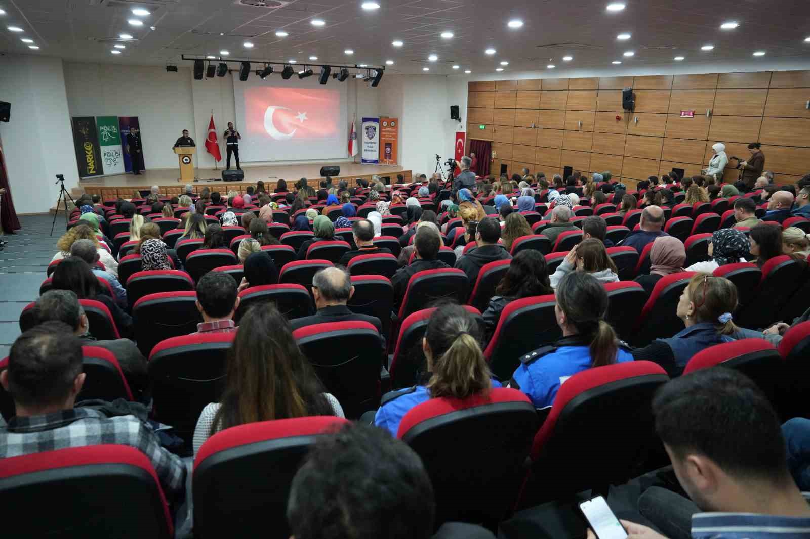 “En İyi Narkotik Polisi Anne” projesi kapsamında İl Emniyet Müdürlüğü konferans salonunda protokol üyelerinin ve annelerin katılımıyla bir eğitim düzenlendi. Eğitimde emniyetin narkotik, siber suçlar, aile içi ve kadına karşı şiddet ile asayiş birimlerinde görevli personeller sunum yaptı. Toplantı ilk olarak saygı duruşundan bulunulması ve İstiklal Marşı okunmasıyla başladı.