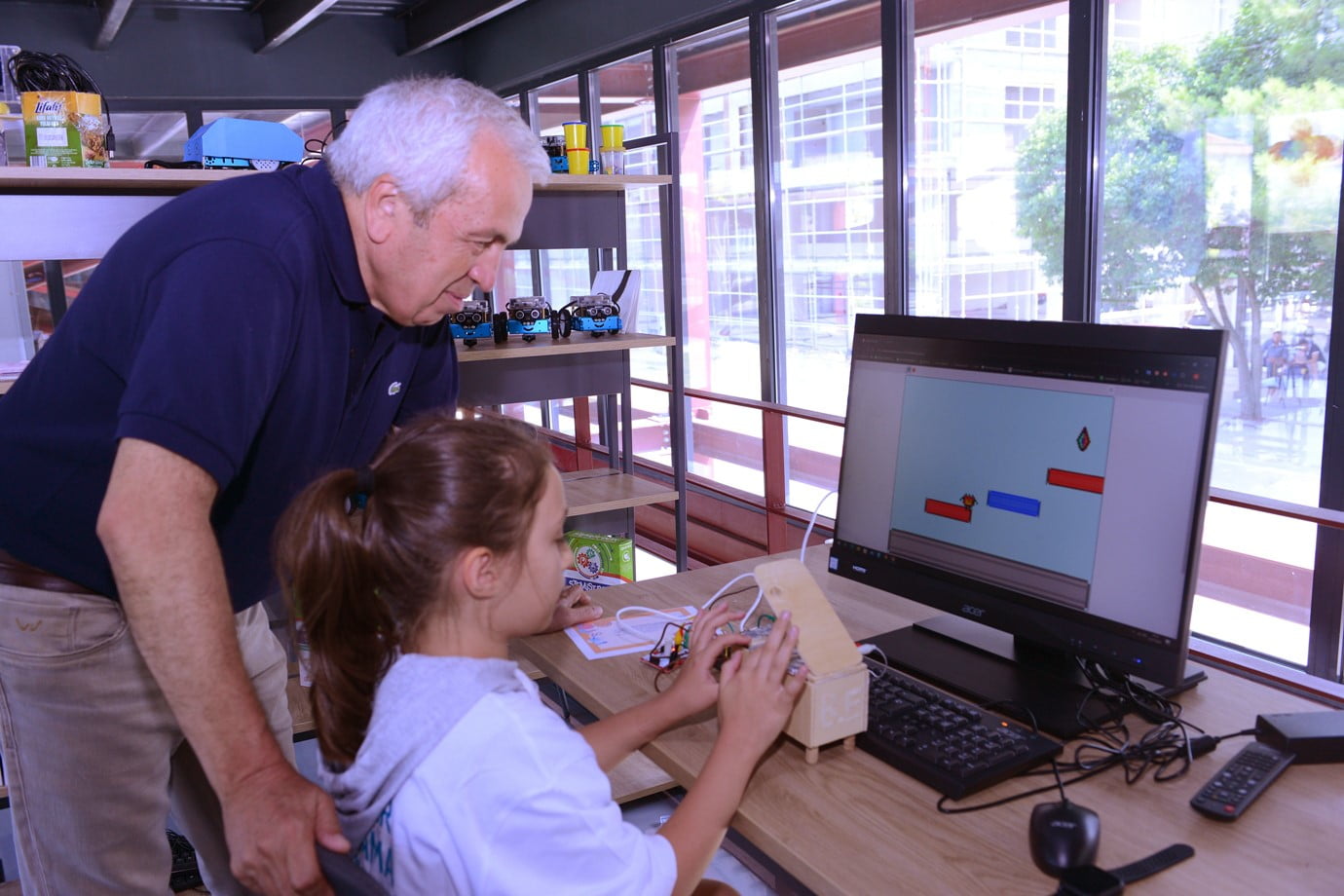 Nilüfer Belediyesi, çocuk ve gençleri teknolojiyle buluşturmaya ve geleceğe en iyi şekilde hazırlamaya devam ediyor. Nilüfer Belediyesi bünyesindeki Kadın ve Çocuk Akademileri’nden gelen 52 öğrenci, yaklaşık 60 saatlik atölye çalışmalarının ardından ürettikleri projeleri Pancar Deposu’nda düzenlenen fuarda sergiledi. 5., 6., 7. ve 8. sınıf öğrencilerinden oluşan katılımcılar, ahşap modelleme, robotik kodlama, temel elektronik ve yapay zekâ gibi alanlarda edindikleri bilgi ve becerileri kullanarak ortaya koydukları çalışmalarını düzenlenen etkinlikte görücüye çıkardı.