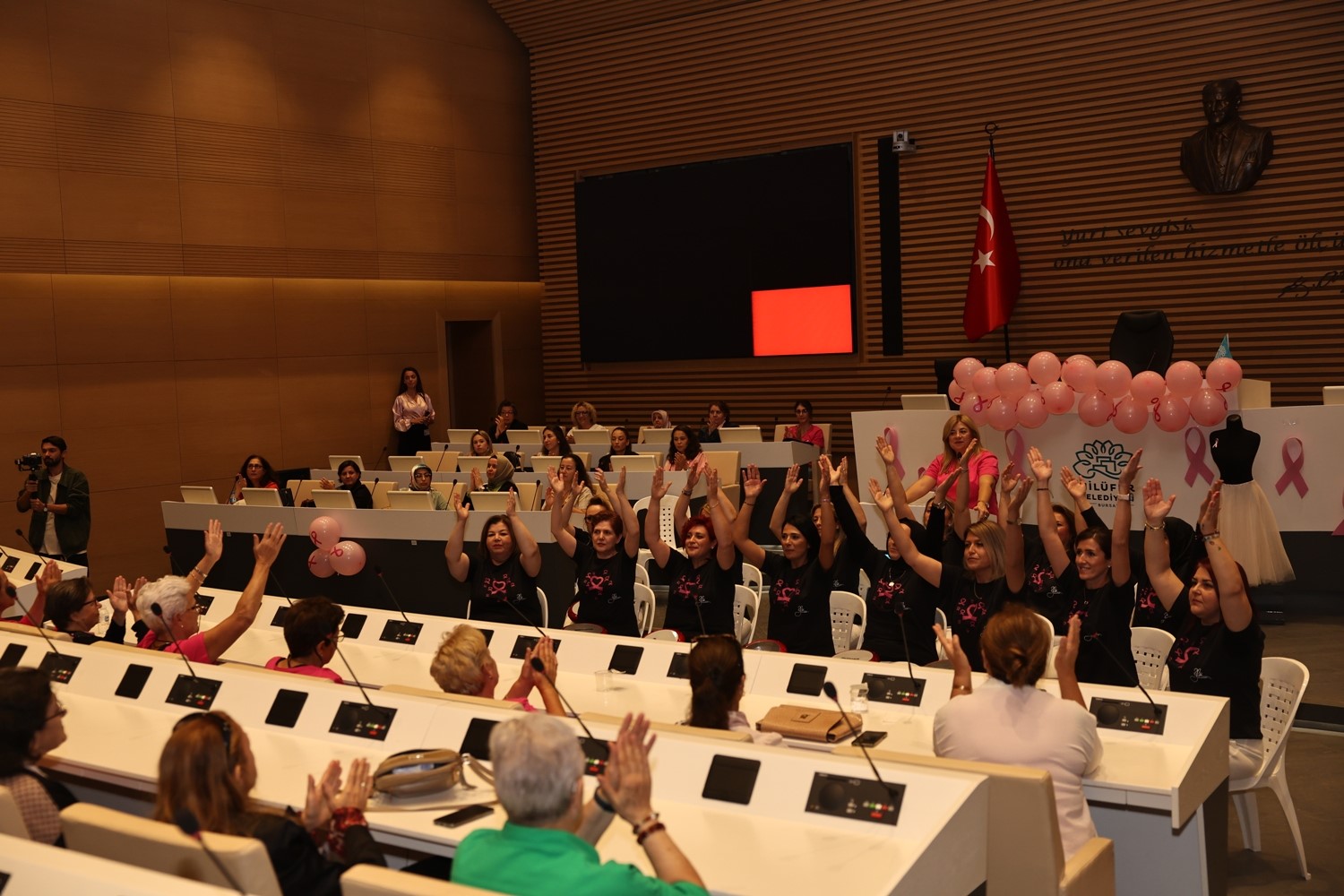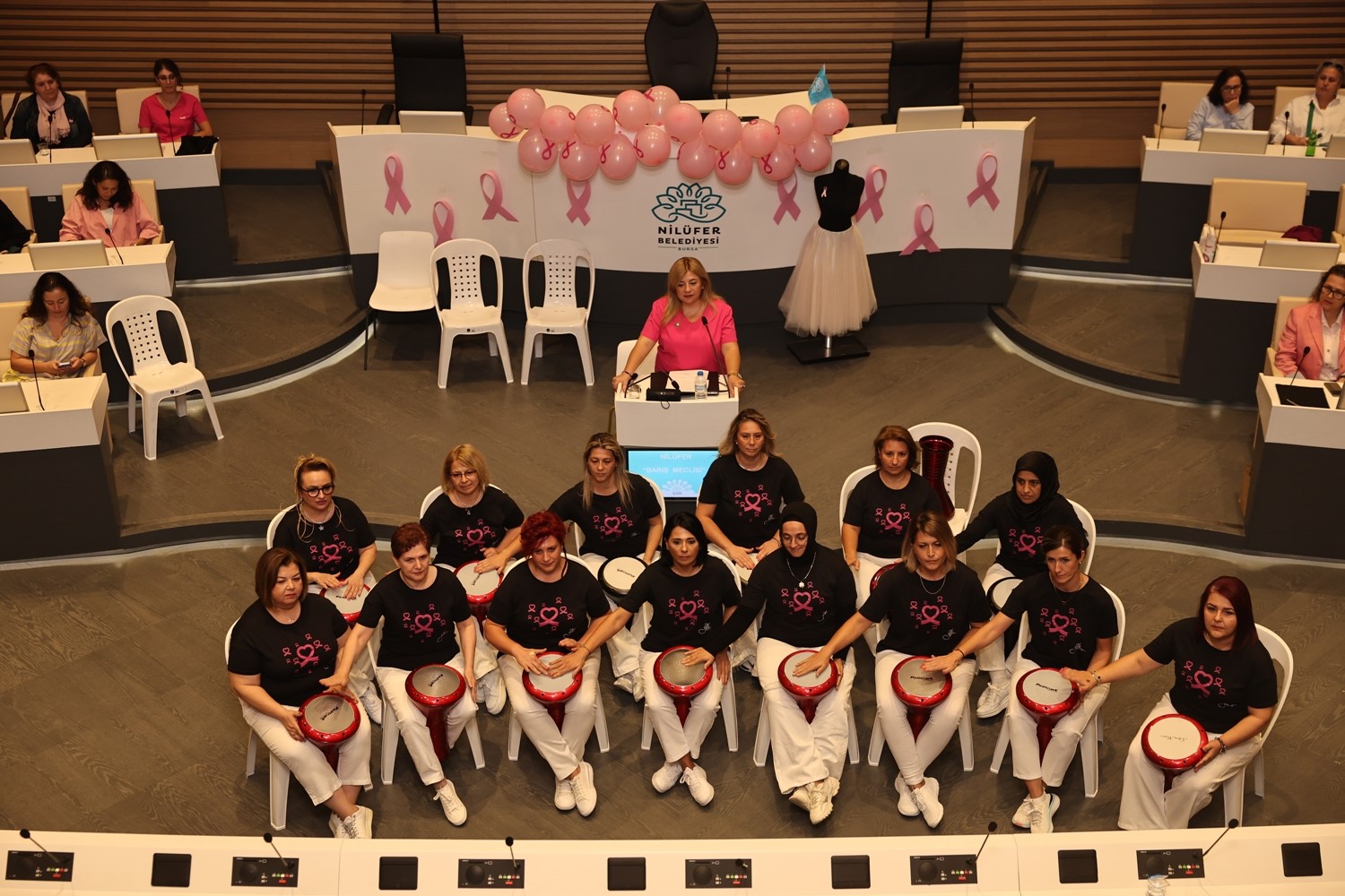 Etkinliğin sonunda, Nilüfer Belediyesi çalışanları ve ONKODAY gönüllüleri, Nilüfer Belediyesi Halk Evi önünde dev bir pembe kurdele oluşturarak meme kanseri konusuna dikkat çekti.