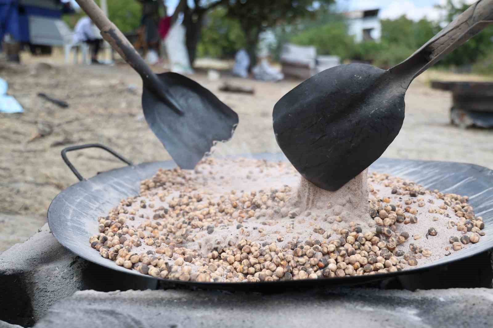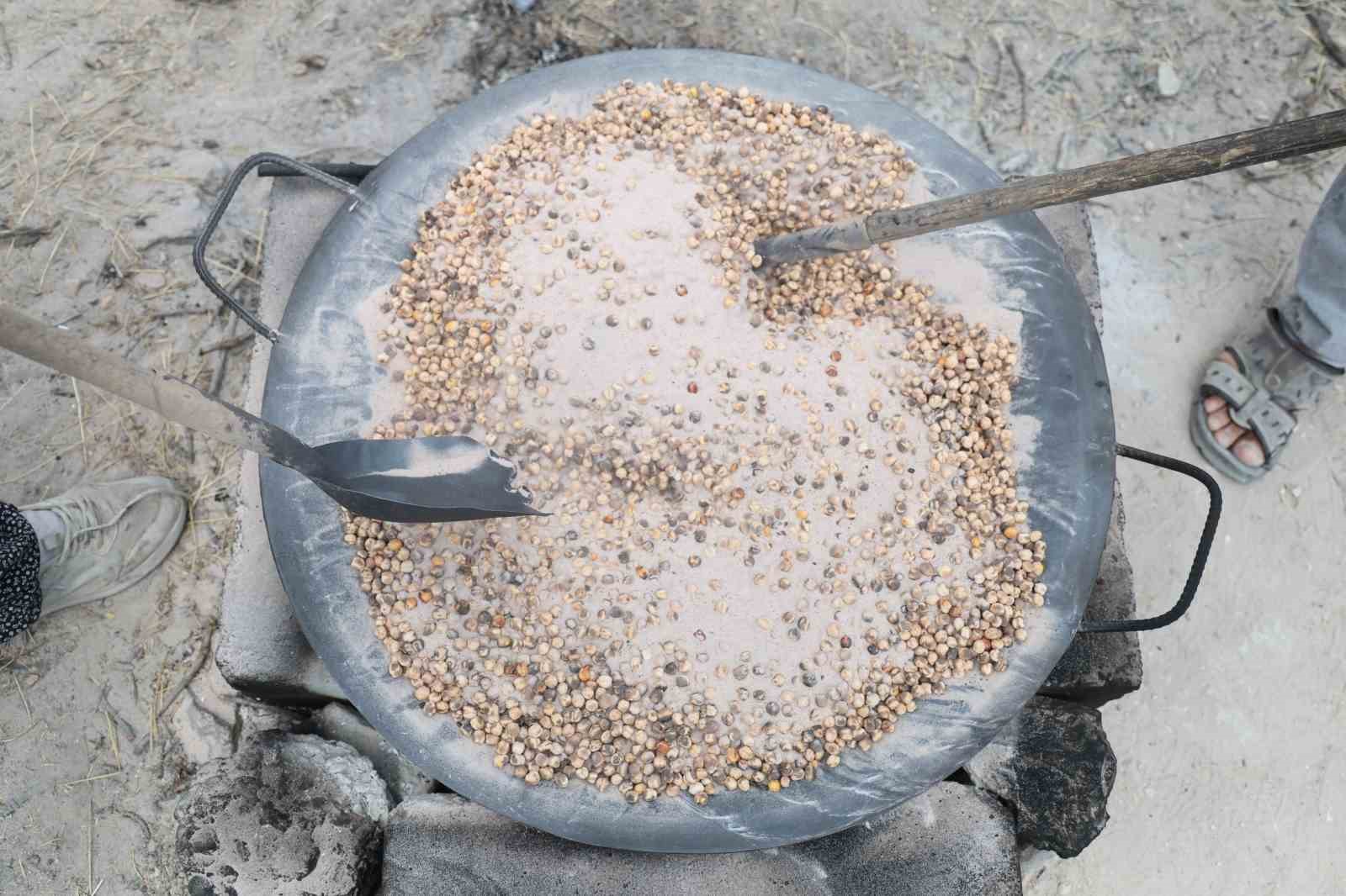 Elazığ’ın Ağın ilçesinde nohudun meşe ateşi eşliğinde yöreye has kumla kavrulmasıyla üretilen coğrafi işaretli Ağın leblebisinin üretimi sürüyor. Yörede nohudun kum ve ateşle dansı olarak adlandırılan işlem, güneşin altında el emeği ile yapılıyor.