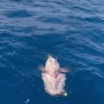 Hatay’da balık avlamak için Akdeniz Körfezi’ne açılan amatör balıkçı Atakan Gözüküçük, yaklaşık 1,5 metre boya ve 45 kilogram ağırlığa sahip devasa balığı oltayla yakalamayı başardı.