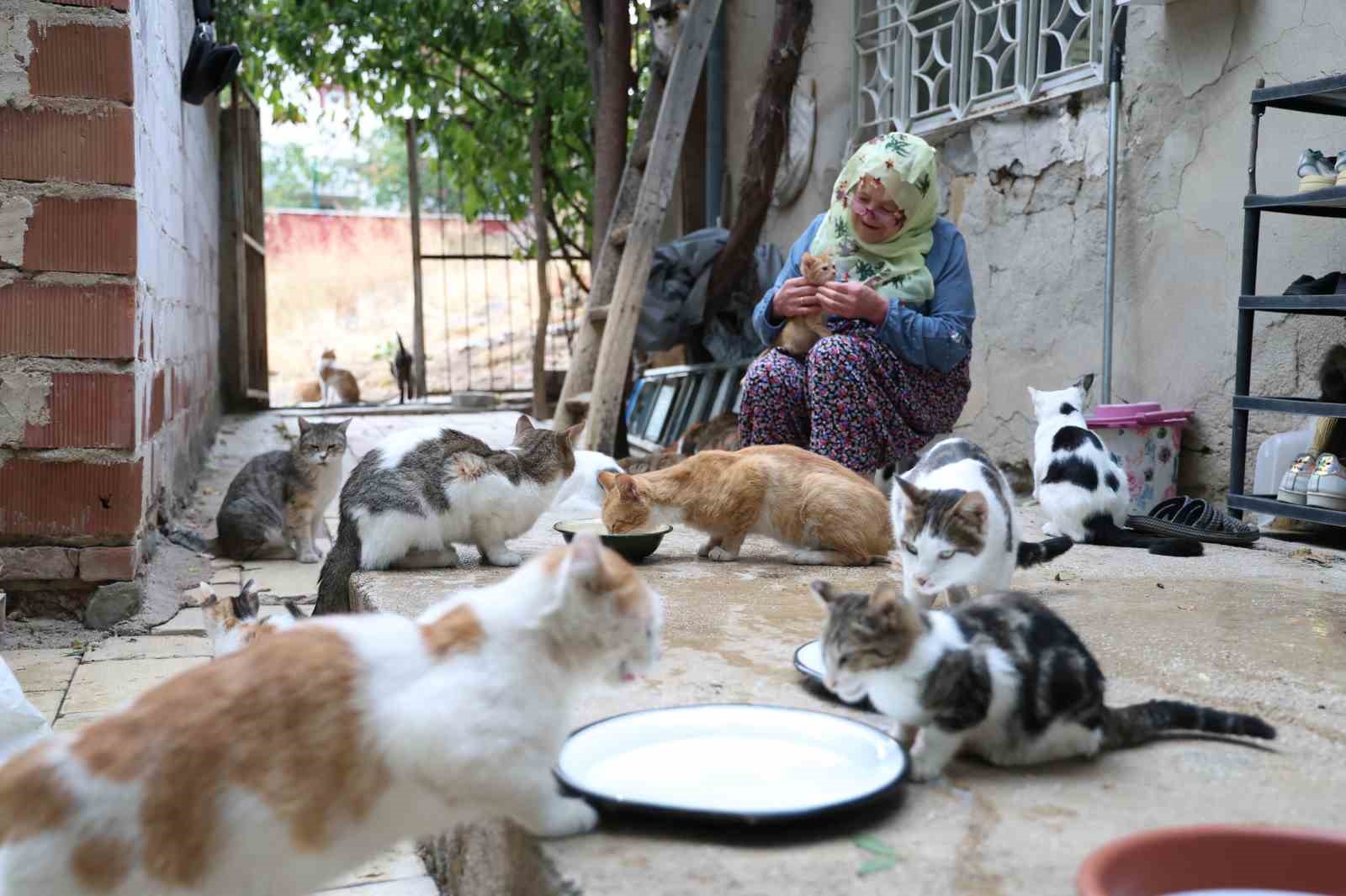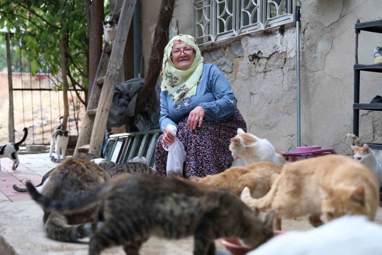 Elazığ’da 11 yıl önce bir anne ve 3 yavru kediyle başlayan 65 yaşındaki Nuriye Yucasu, 11 yıldır 70’e yakın kediye bakıyor. Onlarca kediye tek tek isim koyan ve çocukları gibi ilgilenen Yucasu, kışın evinde yazın ise bahçede bakıyor.