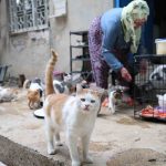Elazığ’ın tarihi Harput Mahallesinde yaşayan 3 çocuk annesi Nuriye Yucasu, 11 yıl önce bir anne ve 3 yavru kediye sahip çıktı. Ardından içinde bir kedi sevgisi doğan Yucasu, kapısına gelen tüm kedilere kucak açtı. Yucasu, ailesiyle birlikte 11 yıldır yaklaşık 70 kediye ev sahipliği yapıyor. Tüm zamanının onlarla geçiren Yucasu, tek tek isim koyduğu kedilerle çocukları gibi bakıyor. Nuriye teyzeyi görmeleri ile bir anda etrafına toparlanan kediler ise elinden karınlarını doyuruyor.