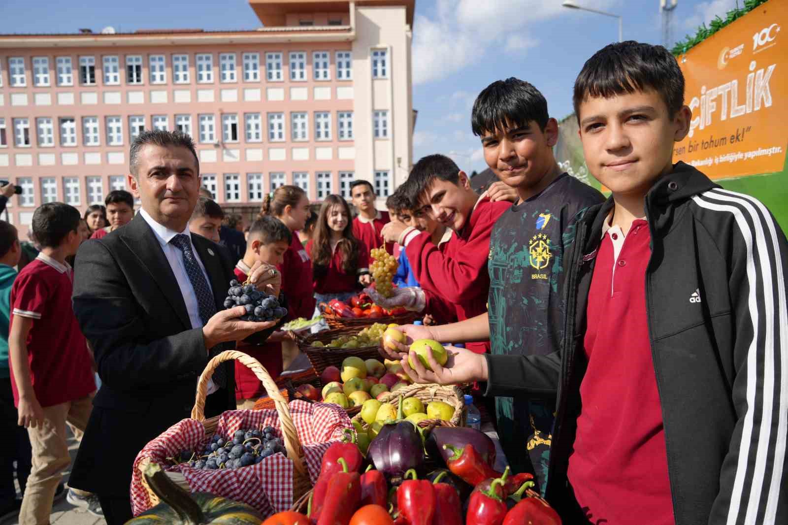 Domates, biber, patlıcan, karnabahar gibi mevsimlik sebze ve aynı zamanda meyve yetiştiren ortaokullu öğrenciler Tarım ve Orman İl Müdürlüğü ekiplerinin destekleriyle birlikte çiftçilik mesleğinin inceliklerini öğrendiler. Öğrenciler yetiştirip dalından kopardıkları meyveleri önce tattılar sonra ise Dünya Gıda Günü nedeniyle düzenlenen etkinlikte satışa çıkardılar.