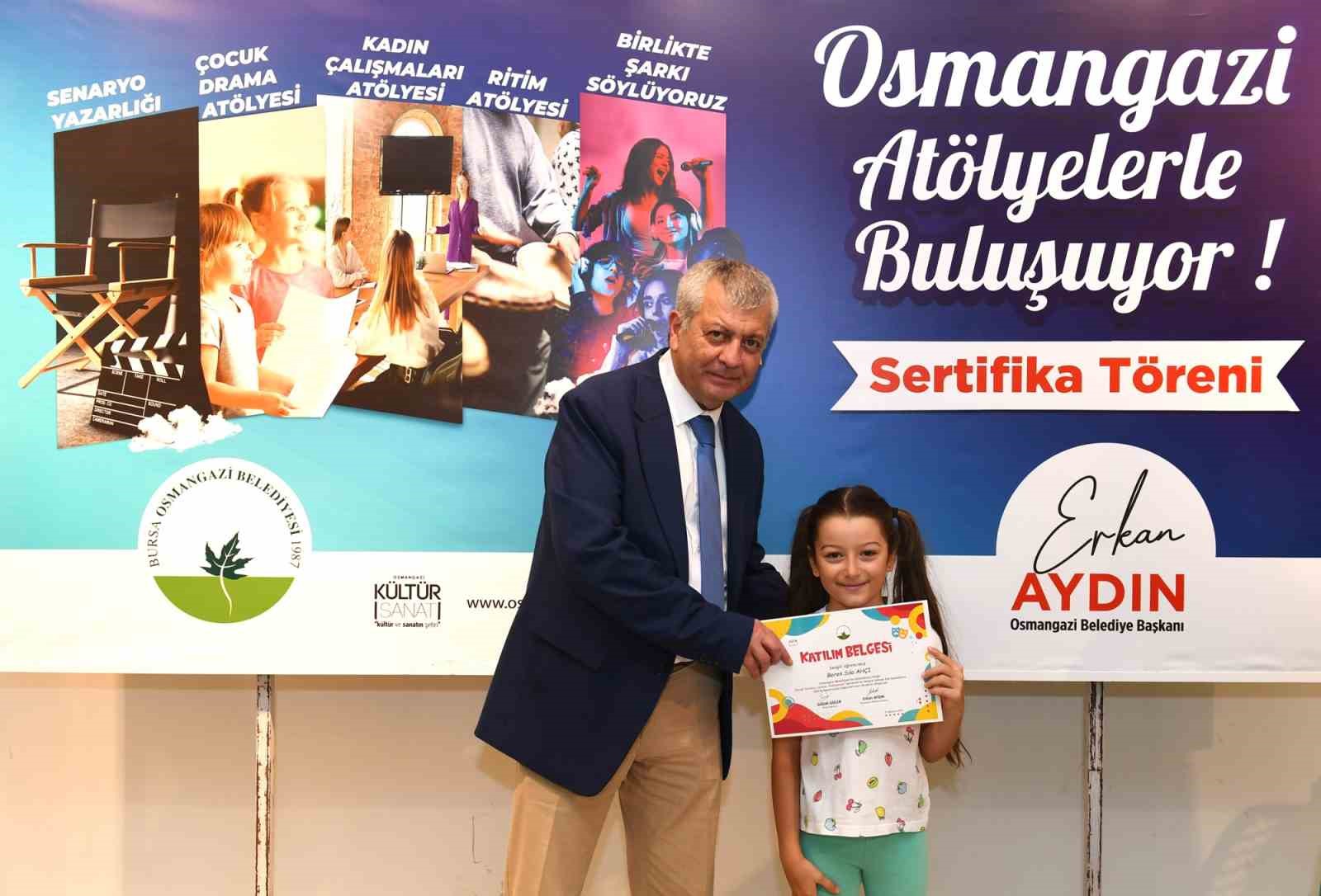 Osmangazi Belediyesi’nin açtığı Çocuk Drama Atölyesi’ni başarıyla bitiren öğrenciler sertifikalarını düzenlenen törenle aldı.