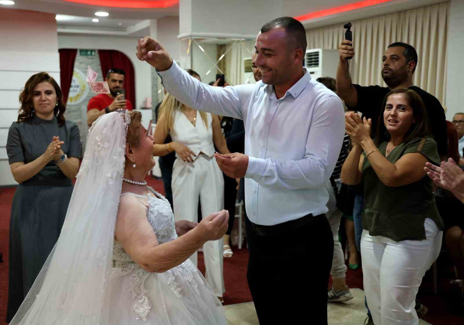 Adana’da yıllar önce platonik aşkıyla evlenemeyince bir daha hiç evlenmeyen 83 yaşındaki kadının gelinlik giyip düğün yapma hayali gerçeğe dönüştü. Temsili yapılan düğünde yaşlı kadının mutluluğu gözlerinden okundu.