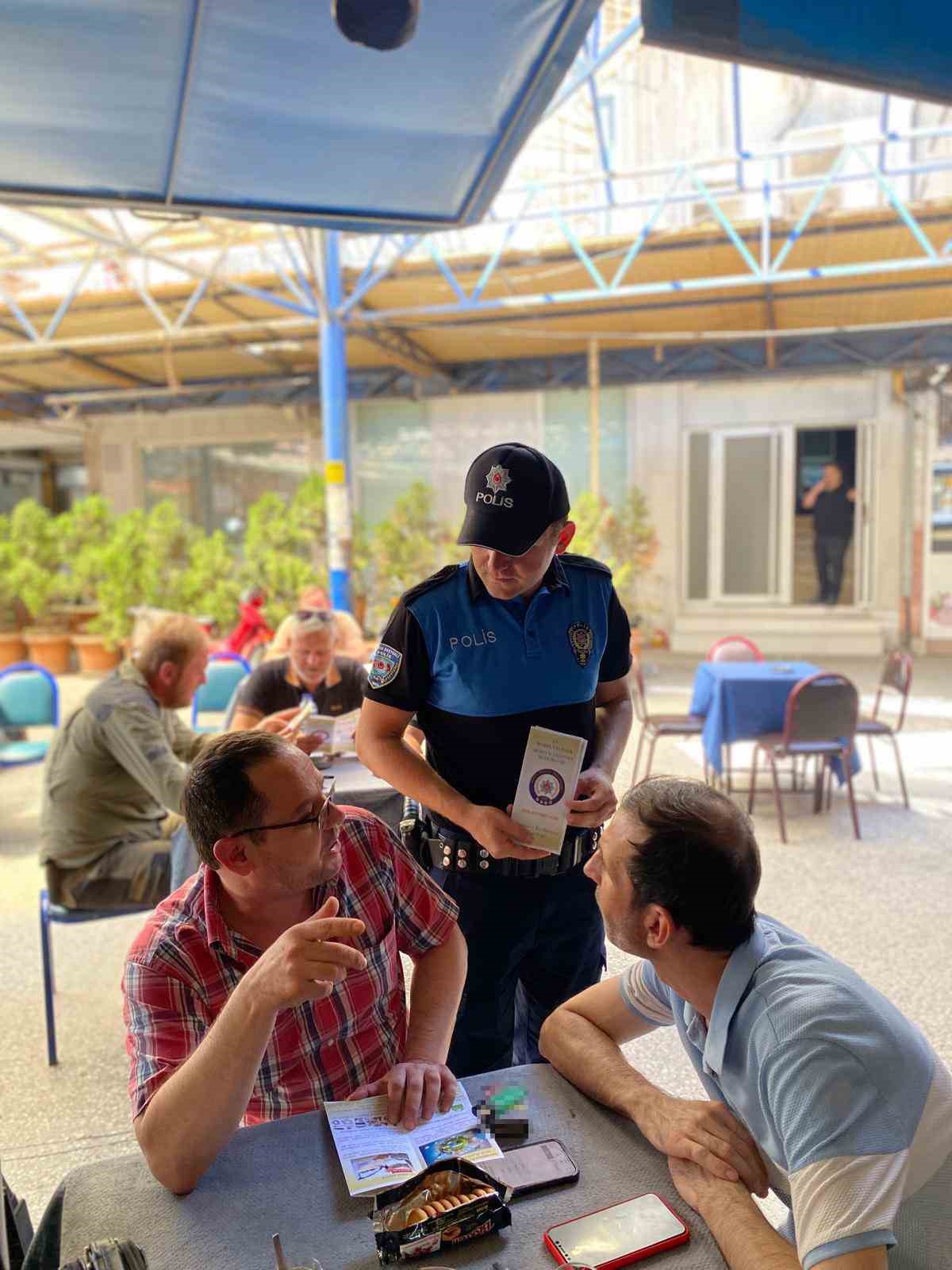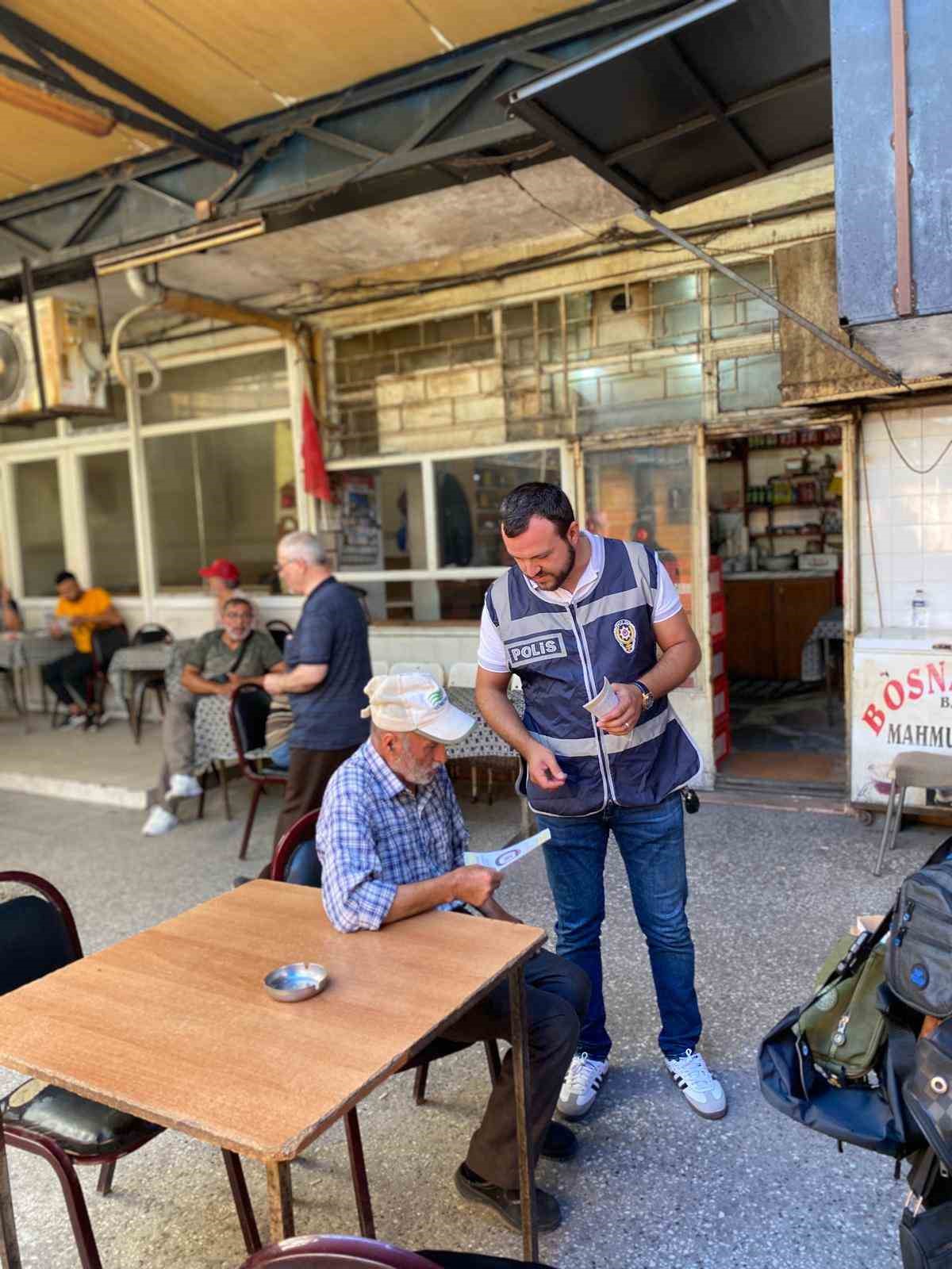 Karacabey Emniyet Müdürlüğü Toplum Destekli Büro Amirliği, Polis Merkezi Amirliği ve Asayiş Büro Amirliği ekipleri, Karacabey ilçesinde kıraathanelere giderek vatandaşlara dolandırıcılık faaliyetleri ile ilgili uyarılarda bulundu.