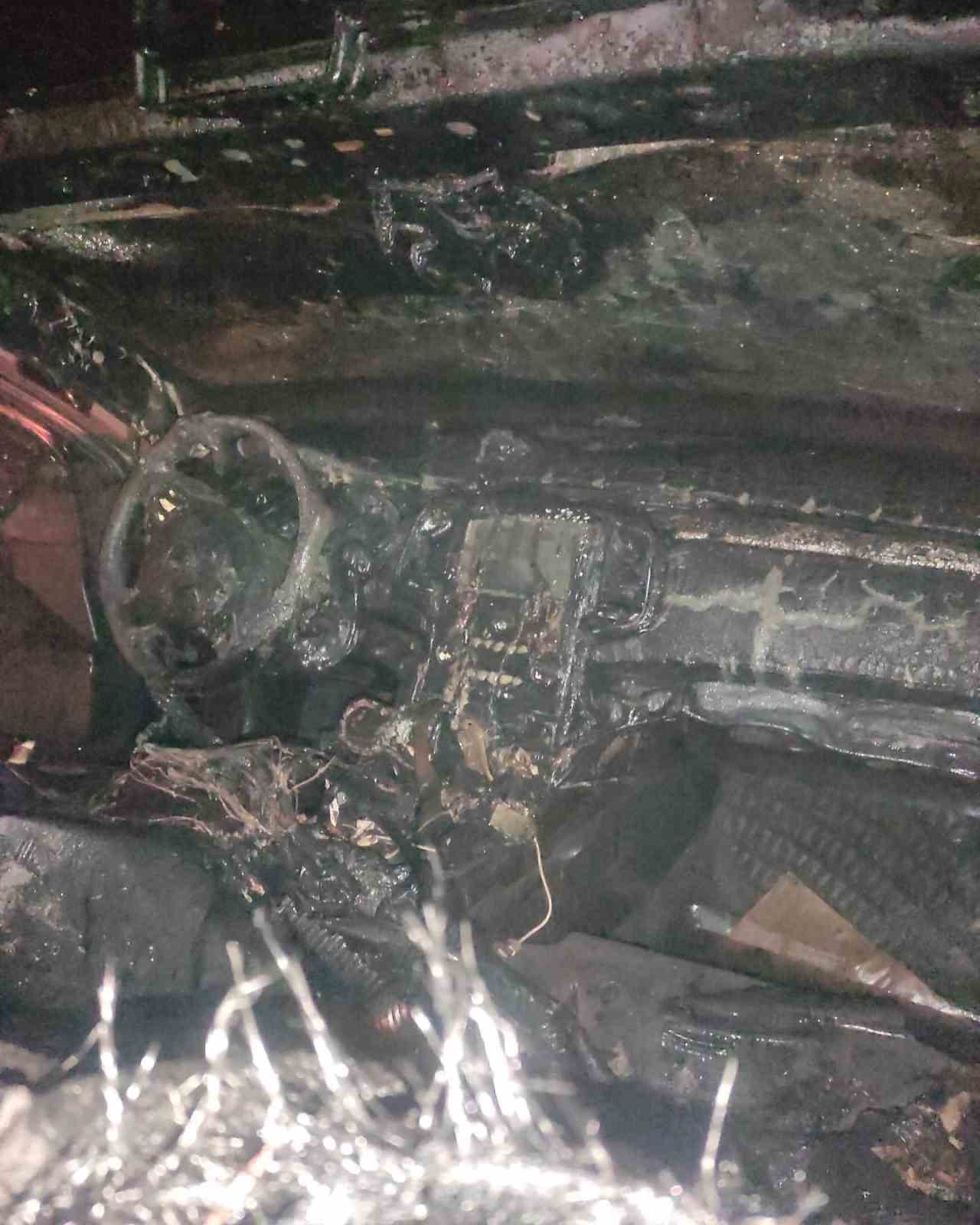 Hatay’da park halindeyken alevlere teslim olan otomobil kullanılmaz hale geldi.