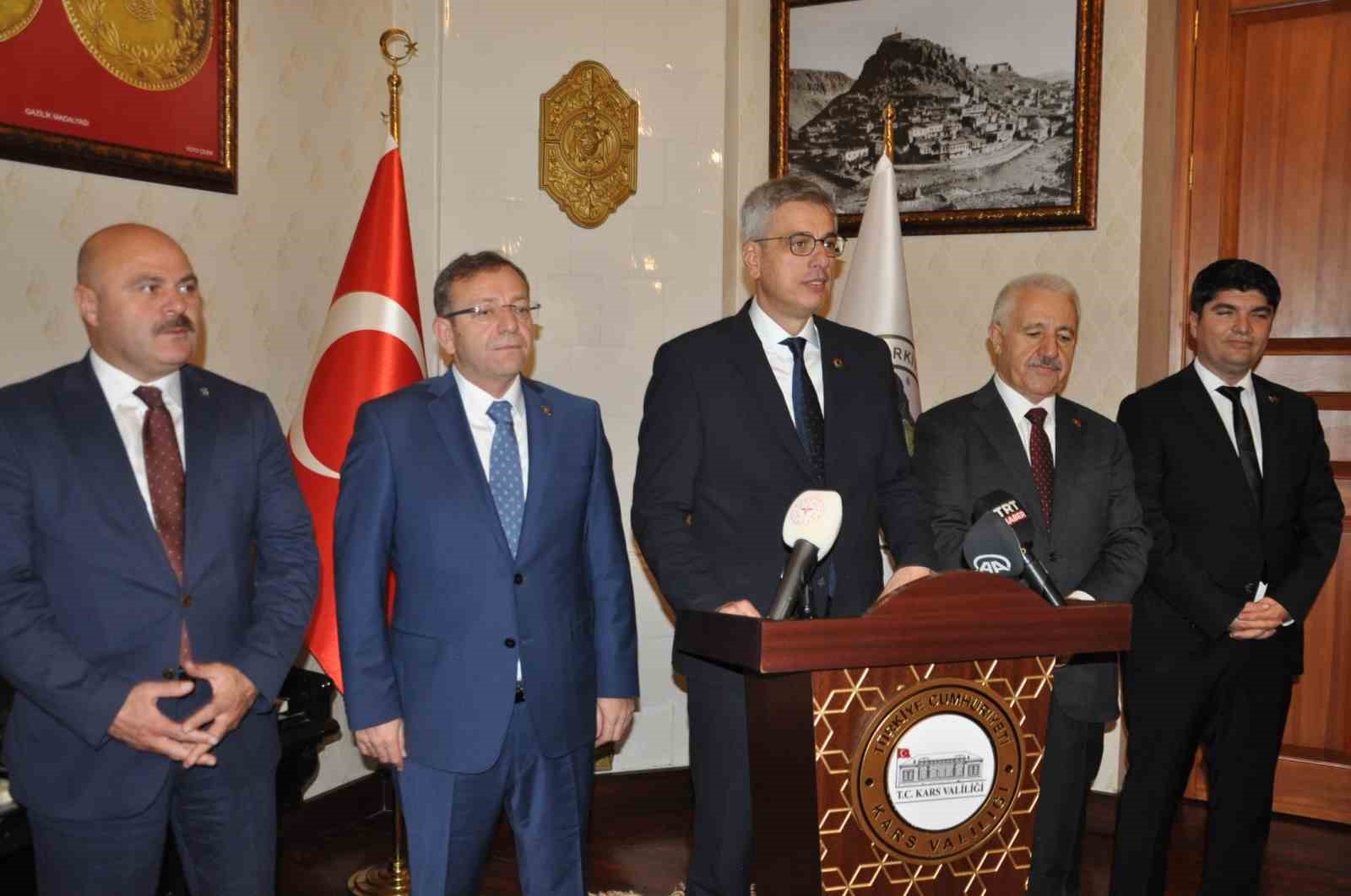 Bakan Memişoğlu’nu Kars Valiliği ziyaretinde Vali Ziya Polat, Milletvekili Adem Çalkın, 65. Hükümette Ulaştırma, Denizcilik ve Haberleşme Bakanı Ahmet Arslan, kurum ve daire müdürleri karşıladı.