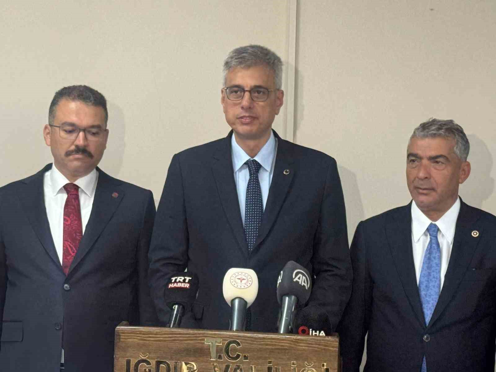 Bakan Memişoğlu, hastanede yaklaşık iki yıldır yapılması planlanan hastane ile ilgili açıklamada bulundu. Bakan Memişoğlu konuşmasında, “Serhat şehri Iğdır’ımıza geldik ve sağlık hizmetlerini değerlendiriyoruz. Gerçekten Iğdır hem Aras’ı hem Ağrı Dağı’yla Türkiye’mizin en güzel illerinden bir tanesidir. Bizi misafir ettikleri için hepsine çok teşekkür ediyorum. Iğdır’da sağlık hizmetleri anlamında değerlendirmemiz neticesinde şunu gördük ki Iğdır çok daha iyi sağlık hizmetini yapabilecek kapasiteye sahip. Bunun için de inşallah projesini bitirdiğimiz, çok yakında ihalesini yapıp inşaatına başlayacağımız 400 yataklı hastanemizi bir an önce Iğdırlılara kazandıracağız. Bunun burada sözünü veriyoruz. Ve çok yakında herkes görecek ki Iğdır’ı sadece kendisine değil, kendi iline değil, çevresindeki illere, hatta uluslararası anlamda sağlık hizmeti verebilecek kapasiteye inşallah ulaştıracağız. Bunun yanında özellikle sağlık ve hayat merkezi olmayan Iğdır’ımızda bir proje hazırladık. Onun da çok yakın zamanda inşaatına başlayacağız. Temel sağlık hizmetlerini biliyorsunuz önemsiyoruz, aile hekimliklerini önemsiyoruz. Ve onları kuvvetlendirmeye çalışıyoruz. Emin olun birinci basamak temel sağlık hizmetleri hastalanmadan sağlığımızı korumak esas hedeflerimizden bir tanesi. Bununla ilgili de inşallah iyi hekimlik uygulamalarını ödüllendireceğimiz, aynı zamanda onların toplumla beraber daha iyi kaynaşması sağlayacağımız bir sistem ile üstlerine çalışıyoruz. Dezenformasyonlara, yanlış haberlere toplumun itibar etmemesini, hekim arkadaşlarımın itibar etmemesini özellikle istirham ediyorum. Emin olun biz özellikle aile hekimliğini, temel sağlığı ön planda almış, Sayın Cumhurbaşkanımızın liderinde sağlığın dünyanın en iyi sunulduğu ülkelerinden bir tanesiyiz ve sadece sağlık hizmetini değil aynı zamanda sağlık teknolojisini, sağlık bilimini de üretecek çalışmalar içindeyiz. Onun için ben herkese özellikle sağlık ekiplerine, sağlık çalışanlarına ve tüm topluma teşekkür ediyorum. Çünkü bizler iyi taraftarız. Bugün medeniyetlerin maalesef kötülüğü güçlü kıldığı güçlünün sanki haklı olduğu bir sistem var. Esasen bizim medeniyetimiz iyilik medeniyeti. Bu iyilik medeniyetini yeniden dünyaya hakim kılabilmemiz için daha çok çalışmamız lazım, daha çok üretmemiz lazım ve birlikte hareket etmemiz lazımdır. Iğdır’da bunu gördüm. Onun için Iğdırlılara, Iğdır’ın yöneticilerine, siyasetçilere teşekkür ediyorum. Sağlık sistemini daha iyi hale getireceğimizi özellikle belirtmek istiyorum” dedi.