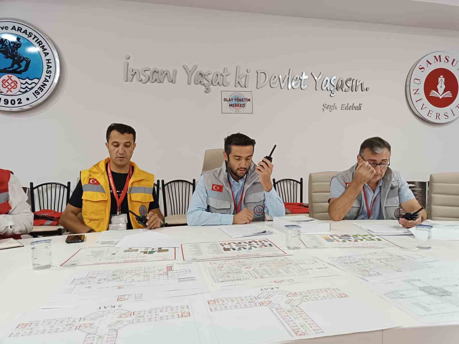 Samsun’da Eğitim ve Araştırma Hastanesi’nde yapılan deprem, yangın, çocuk kaçırma ve kimyasal bulaşma tatbikatı gerçeğini aratmadı. Senaryo gereği ilk önce deprem alarmı yapılan hastanedeki herkes kısa sürede koşarak binayı boşalttı. Bu esnada bazı vatandaşlar içeride yakınlarının kaldığını belirterek, yöneticilere saldırdı. Güvenlik ve yöneticiler hasta yakınlarını zorlukla sakinleştirirken, bu sefer de hastanenin yoğun bakımında kalan ve tedavileri devam eden hastaların tahliyesine başlandı. Yatalak hastalar, yoğun bakımdan alınarak güvenli alanlara taşındı.