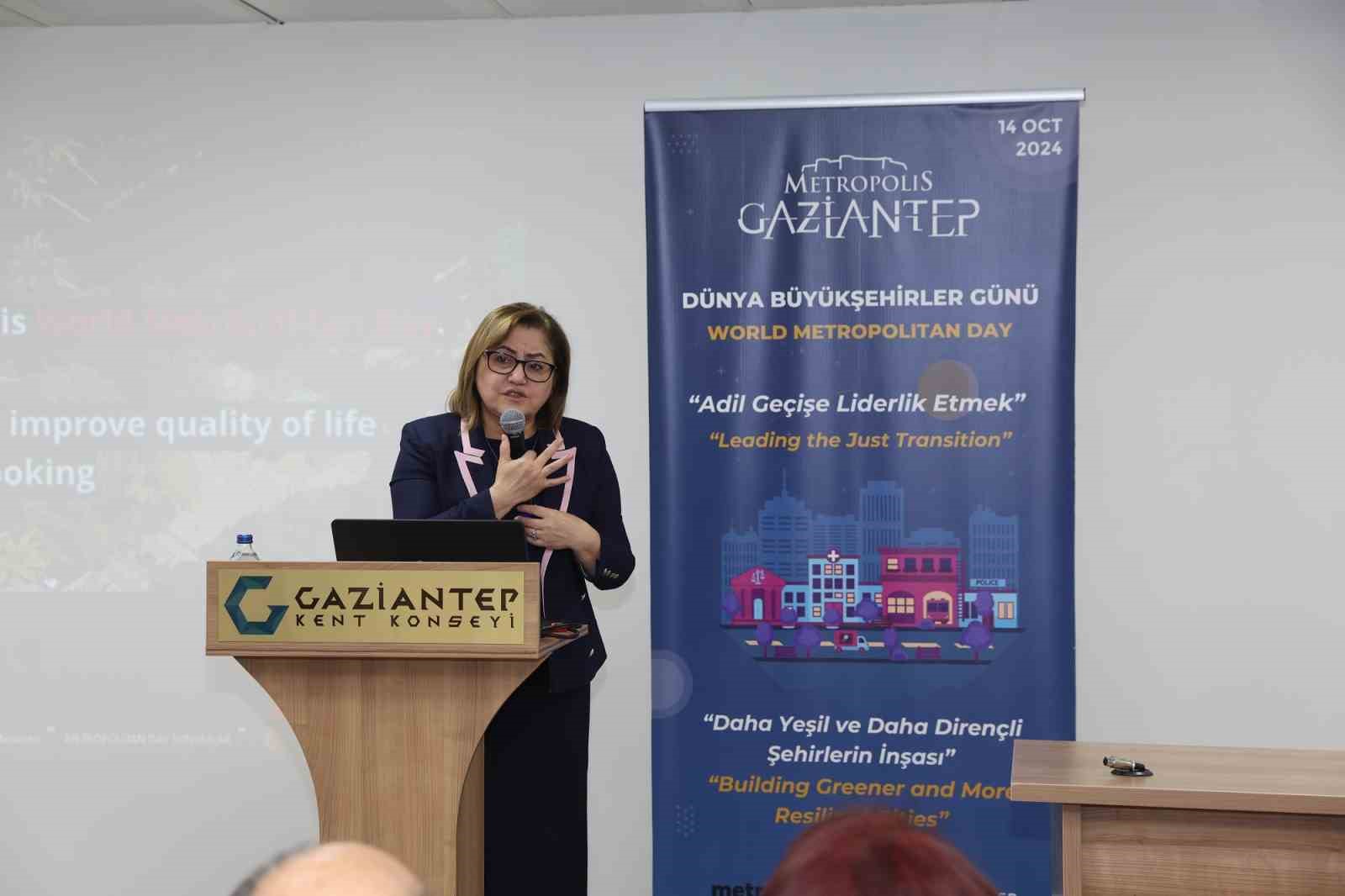 Gaziantep Büyükşehir Belediye Başkanı Fatma Şahin, 14 Ekim Dünya Büyükşehirler Günü’nde yaptığı konuşmada, şehrin stratejik planlamaya ihtiyacı olduğunu belirterek, “Şehri akıllı, dirençli ve yeşil şehir yapacağız. Bu konuda kesinlikle kararlıyız” dedi.