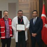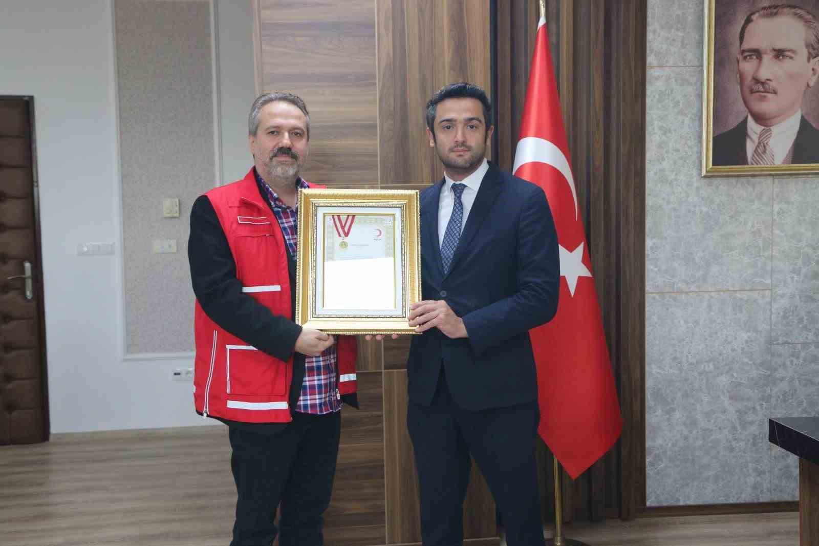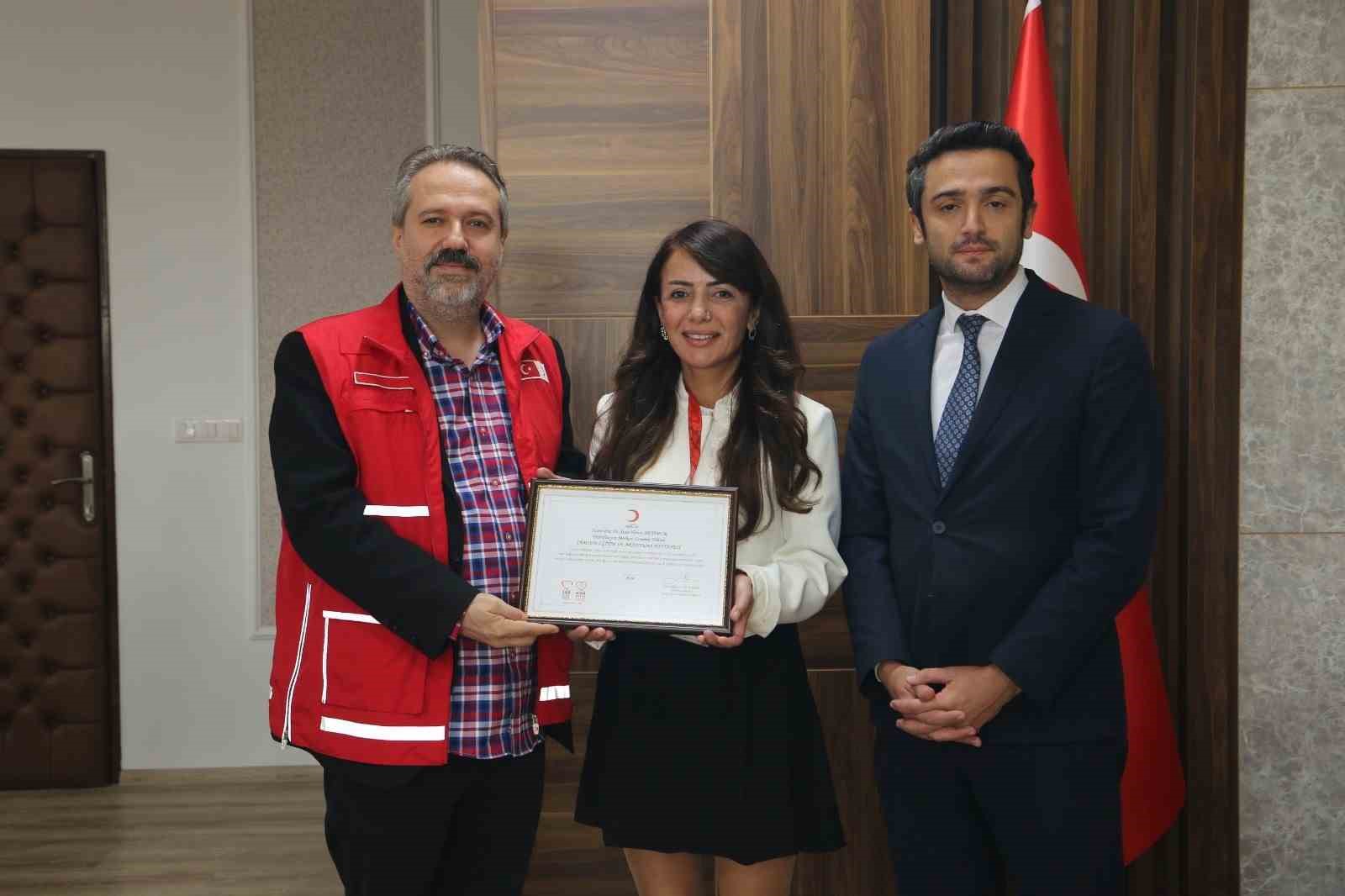 Türk Kızılay Madalya Yönetmeliği gereğince yıl içinde bin 500 ünite ve fazlası kan bağışı yapan kurumlara kurumsal altın madalya takdim ediliyor. 2023 yılında Samsun Eğitim ve Araştırma Hastanesi’ne kurulan kan bağışı noktalarında, hastane personelleri ve gelen ziyaretçiler tarafından bin 833 ünite kan bağışlandı. Bunun sonucunda düzenlenen törenle Samsun Eğitim ve Araştırma Hastanesi Başhekimi Doç. Dr. Ümit Çallı kurum adına kurumsal altın madalyayı Samsun Kızılay İl Başkan Onur Çoban’dan aldı. 2024 yılında hastanede devam eden kan bağışında ilk 9 ayda 3 bin 200 ünite kan bağışlandı. Madalya ve plaket törenine, Orta Karadeniz Bölge Kan Merkezi Müdürü Dr. Muhsin Yıldırım, Samsun Kan Bağışı Merkezi Müdürü Dr. Engin Erdoğan, Bileşen Dağıtım Birim Yöneticisi Dr. Eylem Uyar, Program Yönetimi Birim Yöneticisi Murat Çakmak ve Kızılay Heyeti katıldı.