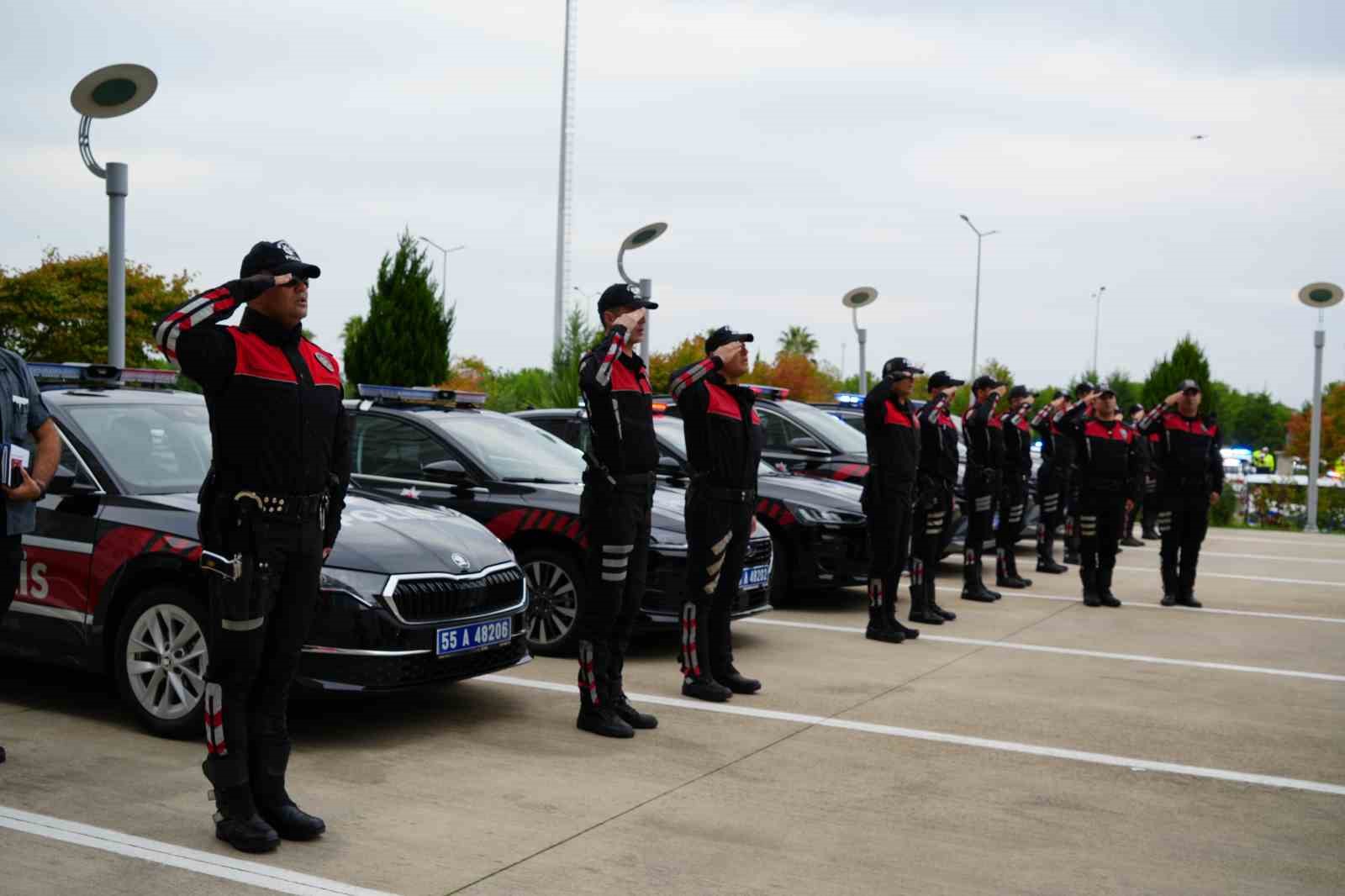 Samsun Emniyet Müdürlüğü’nde 91 adet sıfır ekip aracının ’Hizmete Alım Töreni’ yapıldı. Samsun Valisi Orhan Tavlı ve Samsun Büyükşehir Belediye Başkanı Halit Doğan’ın da katıldığı tören ilk olarak saygı duruşunda bulunulması ve İstiklal Marşı’nın okunmasıyla başladı.