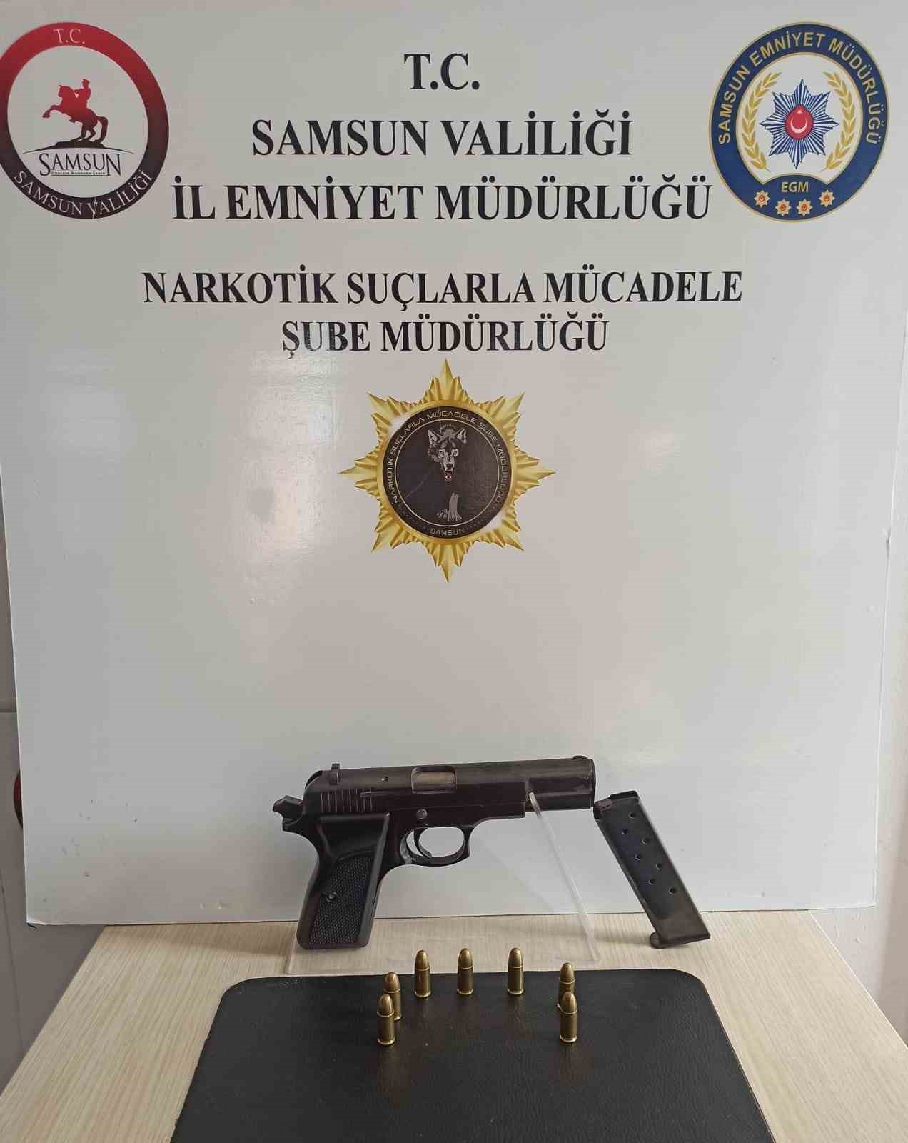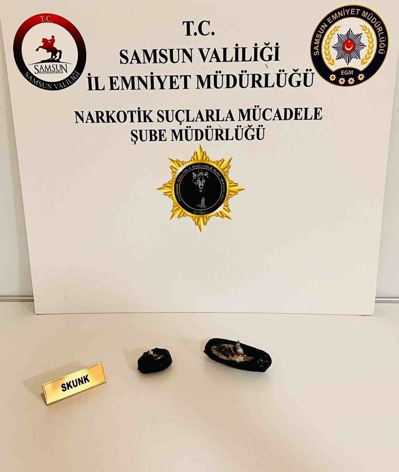 Edinilen bilgiye göre, Samsun Emniyet Müdürlüğüne bağlı resmi ve sivil polisler ile gece bekçileri, il genelinde narkotik uygulaması düzenledi. Yapılan aramalarda 958 adet sentetik ecza, 96,50 gram skunk, 13,71 gram metamfetamin, 4,55 gram esrar, 3,46 gram sentetik kannabinoid, 3 adet uyuşturucu kullanım aparatı, 1 adet ruhsatsız tabanca ve 7 adet tabanca fişeği ele geçirildi. Haklarında uyuşturucu suçundan 1 yıl 8’er ay hapis cezası bulunan 2 kişi ile birlikte 28 kişi yakalandı.
