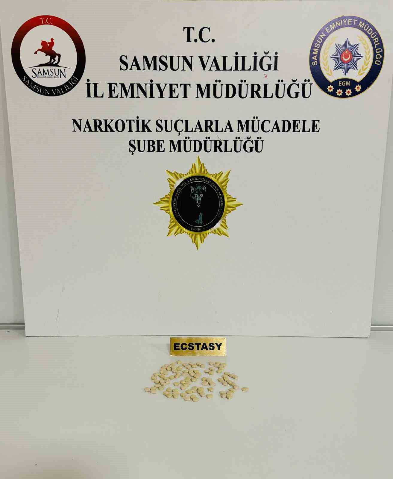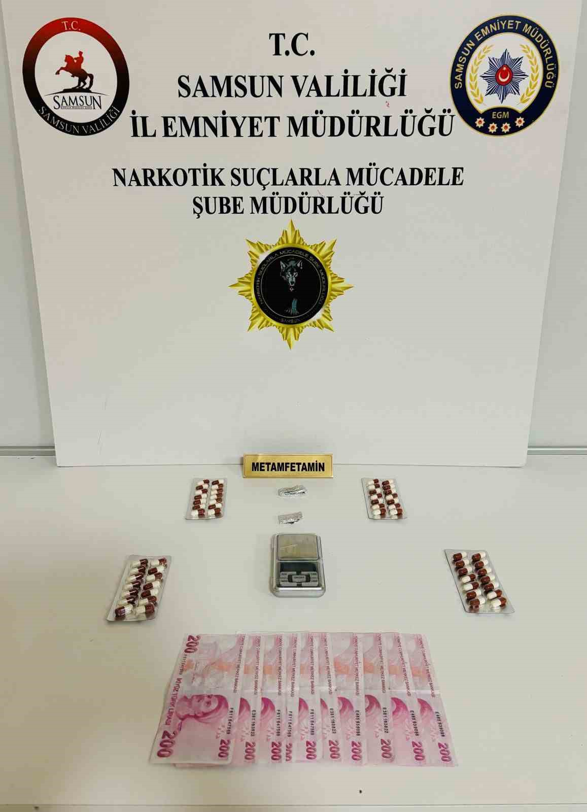 Edinilen bilgiye göre, Samsun Emniyet Müdürlüğüne bağlı resmi ve sivil ekipler, uyuşturucu madde ticareti, nakli veya depolanması faaliyetlerini yürüten şahıs ve şahıslara yönelik olarak yapılan çalışmalar kapsamında İlkadım ve Atakum ilçelerinin farklı mahallelerinde uyuşturucu uygulaması düzenledi. Şüpheli 7 şahsın üzerinde, araçlarında ve ikametlerinde yapılan aramalarda, bin 654 adet sentetik ecza, 100 adet ecstasy hap, 270 gram sentetik kannabinoid, 29 gram sentetik kannabinoid hammaddesi, 390 ml aseton, 3 adet hassas terazi, 6 adet eldiven, 1 adet kurusıkı tabanca, 4,50 gram metamfetamin, 6 adet tabanca fişeği, 4 adet kurusıkı fişeği, 1 adet amaç dışı bıçak, 2 adet uyuşturucu madde kullanım aparatı, 2 bin TL sahte para ve uyuşturucu satışından elde edildiği değerlendirilen 8 bin 900 TL para ele geçirildi. Olayla ilgili 7 şahıs hakkında adli işlem başlatıldı.