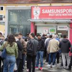 Trendyol Süper Lig’in 9. haftası Samsunspor-Fenerbahçe maçına sahne olacak. Ligde 8. haftanın sonunda 2. sırada yer alan Samsunspor ile 4. sırada bulunan Fenerbahçe maçının biletleri bugün saat 11.00’de satışa çıktı. Samsunlu taraftarlar, biletlerin satışa çıkmasından saatler öncesin satış noktalarında sıraya girerek bilet almaya çalıştılar. Kadın, öğrenci ve engellilere Samsunspor biletlerinin yüzde 20 indirimli olması da ilgiyi arttırırken, 7’den 70’e kadın-erkek, genç-yaşlı herkes Fenerbahçe maçında takımlarını yalnız bırakmamak için saatlerce yağmur altında kuyrukta beklediler.