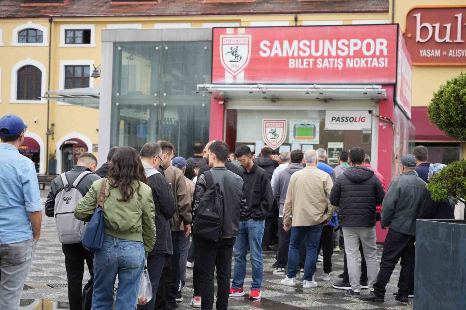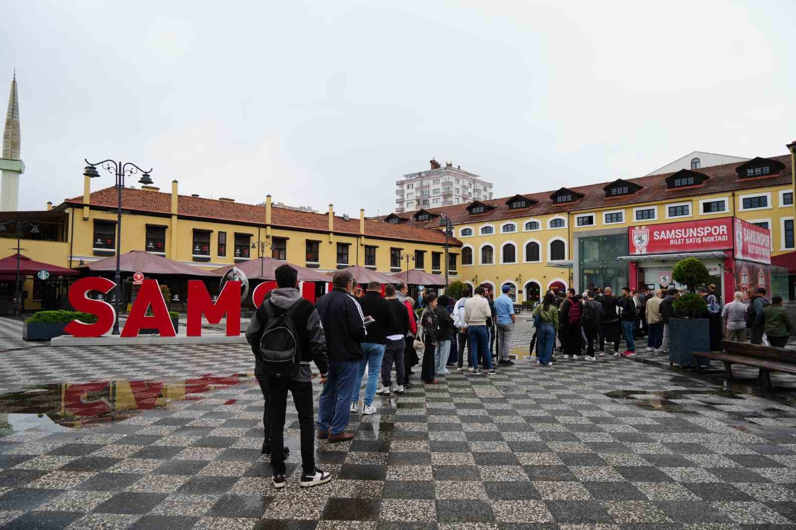 Trendyol Süper Lig’in 9. haftası Samsunspor-Fenerbahçe maçına sahne olacak. Ligde 8. haftanın sonunda 2. sırada yer alan Samsunspor ile 4. sırada bulunan Fenerbahçe maçının biletleri bugün saat 11.00’de satışa çıktı. Samsunlu taraftarlar, biletlerin satışa çıkmasından saatler öncesin satış noktalarında sıraya girerek bilet almaya çalıştılar. Kadın, öğrenci ve engellilere Samsunspor biletlerinin yüzde 20 indirimli olması da ilgiyi arttırırken, 7’den 70’e kadın-erkek, genç-yaşlı herkes Fenerbahçe maçında takımlarını yalnız bırakmamak için saatlerce yağmur altında kuyrukta beklediler.