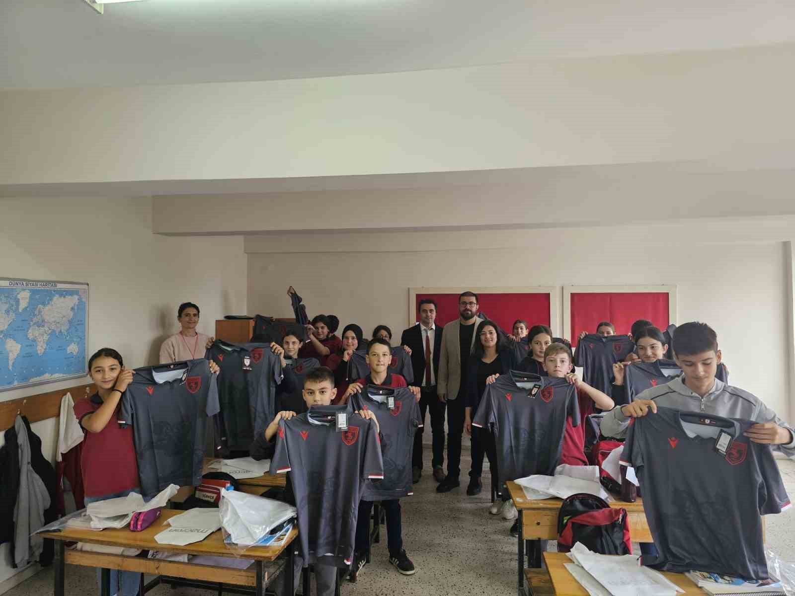 Samsunspor’un efsane kaptanı ve başkanı merhum Emin Kar’ın anısına ortaokul öğrencilerine Samsunspor forması hediye edildi.