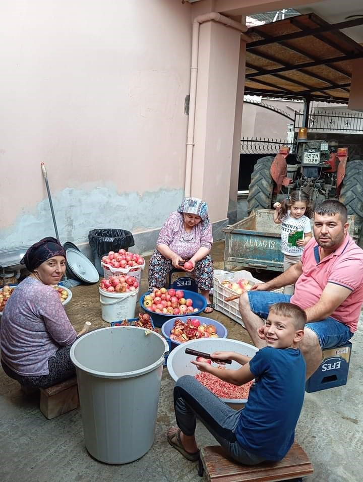 Manisa’nın Sarıgöl ilçesine bağlı Afşar Mahallesi’nde her ev adeta nar ekşisi üretimhanesine dönüştü. Tarlalardan toplanarak evlerde taneleri ayıklanan narlar daha sonra suları çıkarılarak kazanlarda saatlerce kaynamaya bırakılıyor. Kaynayan nar suları şişelere doldurulduktan sonra da yıl içerisinte tüketilmeye hazır hale geliyor. Yıllardır nar ekşisi yaptığını ifade eden Mustafa Akciğer, “Nar ekşisi oldukça zahmetli oluyor. İyi bir nar ekşisini az miktarda dilinizin üstüne koyun önce tatlı ardından da ekşi bir tat gelir. Bu da kaliteli bir ekşi olduğunu gösterir” dedi.