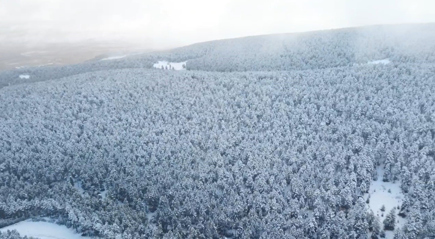 Sarıkamış’ta kış yüzünü gösterdi. Hava sıcaklığının eksi 7 derece ölçüldüğü ilçede, kayak merkezi ve sarıçam ormanları havadan görüntülendi.
