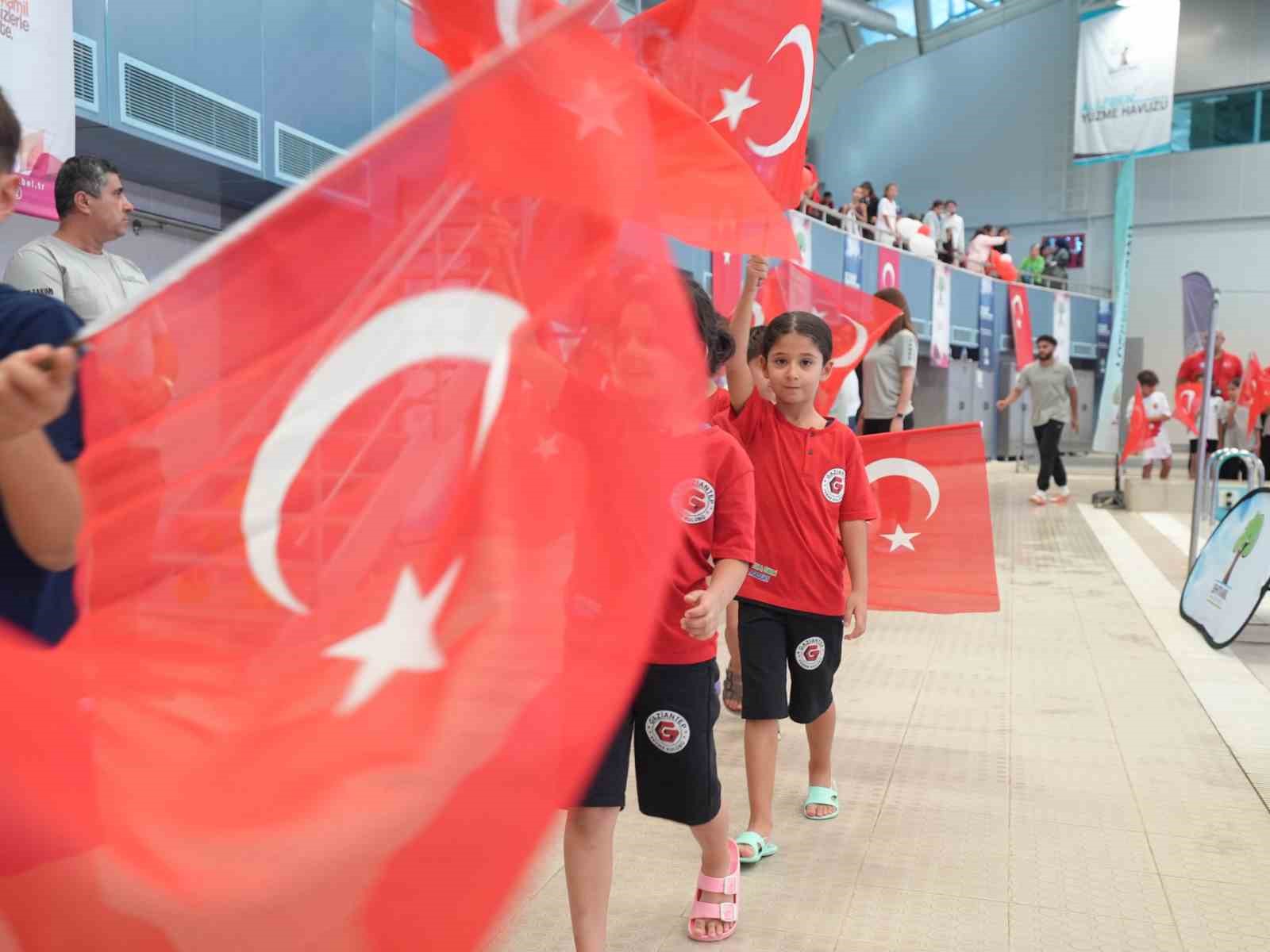 Uluslararası arenada şampiyonlar çıkaran Alleben 1 Yüzme Havuzu’nda Cumhuriyet Bayramı coşkusu doyasıya yaşandı. Aileler ellerinde Türk bayraklarıyla çocuklarına destek verirken, sık sık Cumhuriyet’imizin kurucusu Gazi Mustafa Kemal Atatürk sloganları attı.