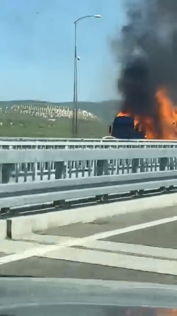 Bursa’nın Karacabey ilçesi, Karacabey-Bursa otobanında seyir halindeki dorse yüklü tır arıza sonrası bir anda alev aldı. Hızla büyüyen alevler dorseye sıçradı. Alevler kısa sürede büyüdü. Alev topuna dönen aracı gören çevredekiler hemen 112 Ekiplerine bilgi verdi. İtfaiye ekiplerince yangın söndürülürken, tır kullanılamaz hale geldi. Olayda can kaybı veya yaralanma meydana gelmedi.