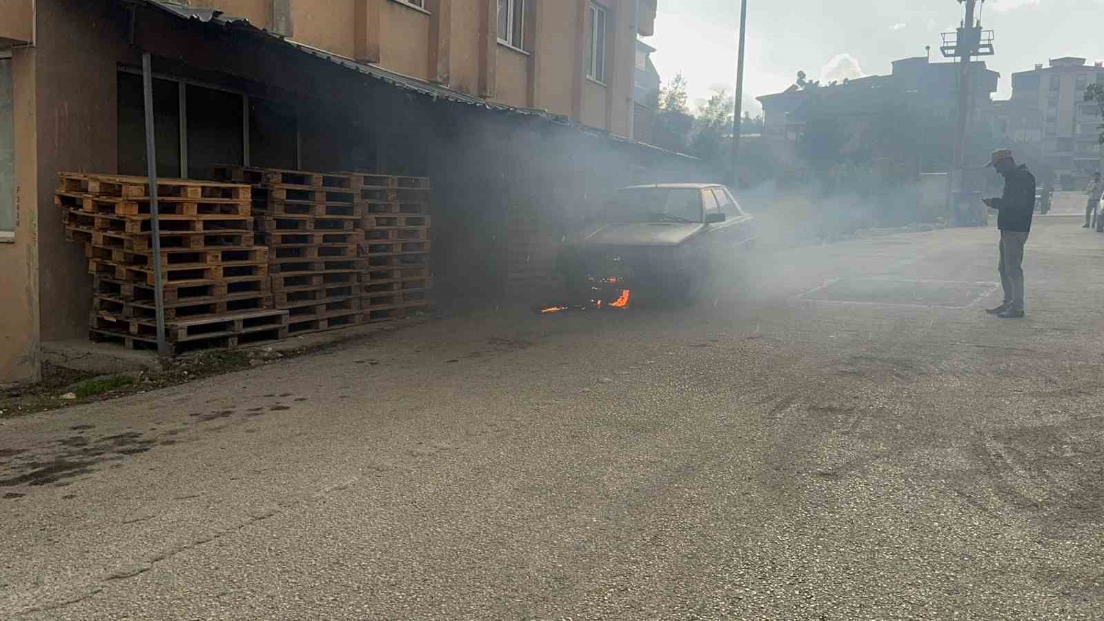 Esnafın müdahalesi sonrası sönen otomobilde maddi hasar oluşurken muhtemel bir faciadan dönüldü.