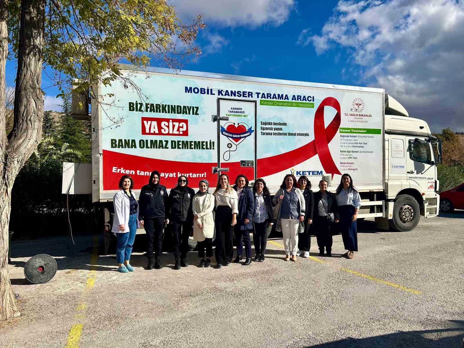 Eğitimin ardından mobil kanser tarama aracı ile meme, rahim ağzı ve kolorektal kanser taramaları gerçekleştirildi.