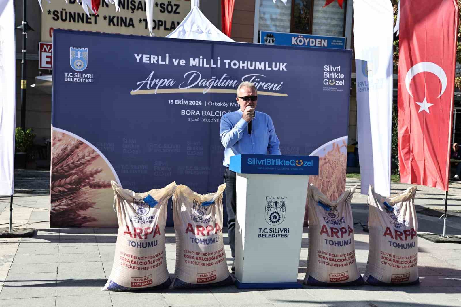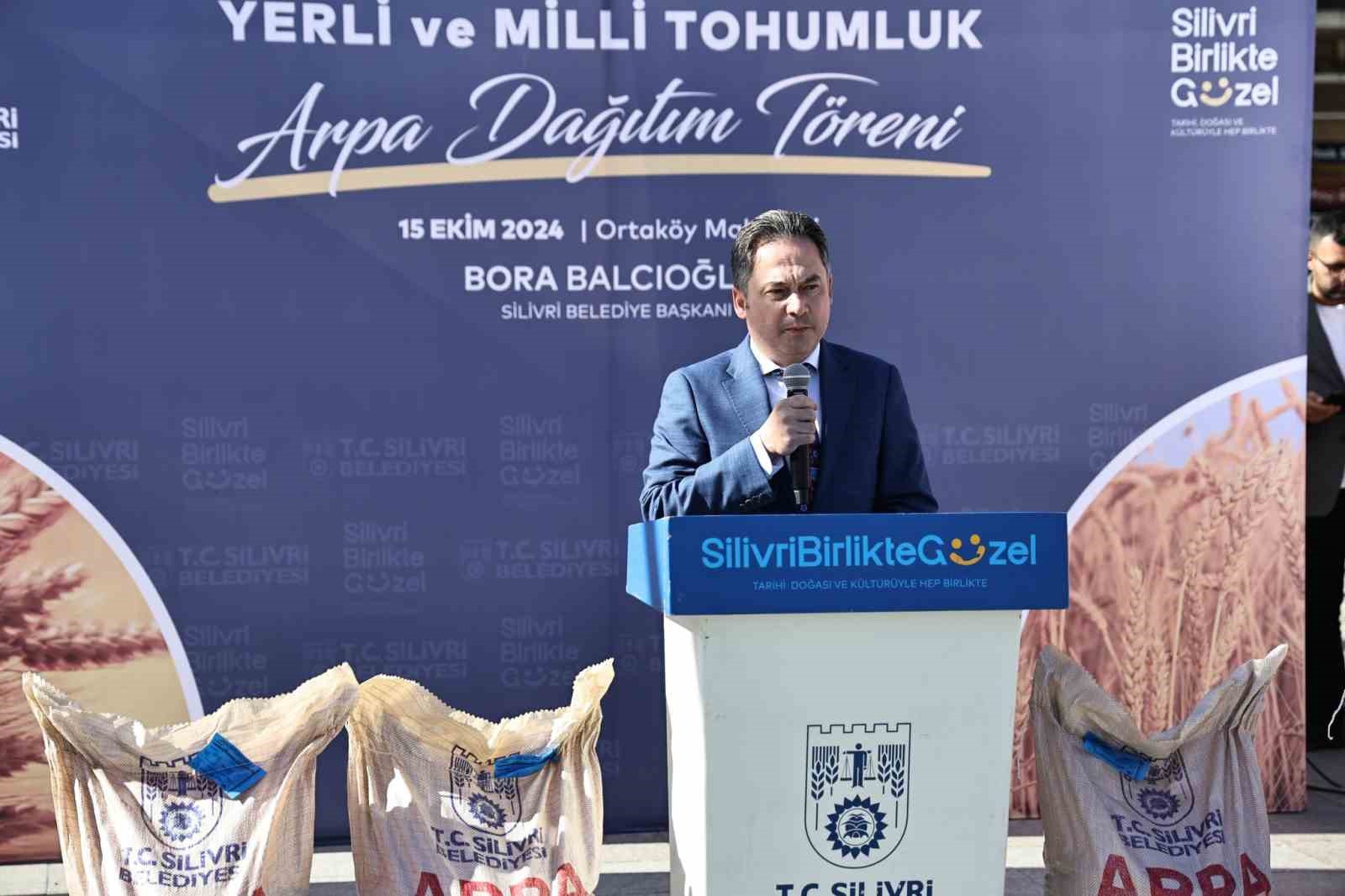 Silivri Belediyesi, Ortaköy Mahallesinde Yerli ve Milli Tohumluk Arpa Dağıtım Töreni düzenledi. Silivri Belediye Başkanı Bora Balcıoğlu,“ Bin 800 üreticimize 360 ton yerli ve milli sertifikalı arpa tohumumuzu ulaştıracağız. Her bir üreticimize 200 kilogram, yani 4 çuval tohum dağıtıyoruz. Bu tohumlar sayesinde Silivri’de 16.200 dekarlık bir alan arpa ile buluşacak. Bu proje ile çiftçilerimize 5 buçuk milyon TL’lik bir destek sağlamış olacağız” dedi.