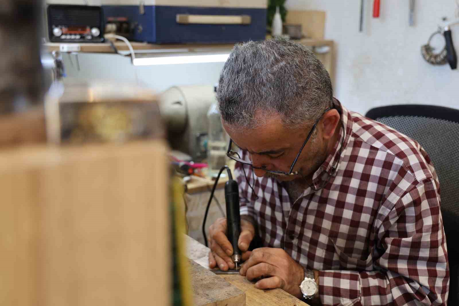 Sivas’ta yaşayan ve 40 yıldır işleme ve oyma işiyle uğraşan Hayati Ünsal, dünyanın en sert çeliğine Göktürklerin Türeyiş destanını işledi. Sipariş üzerine ray makas çeliğinden yaptığı nacağa, Kürşat’ı emziren dişi kurt ve çeşitli figürleri işleyen Ünsal, “Unutulmaya yüz tutmuş sanatlarımızı gün yüzüne çıkartmaya çalışıyorum” dedi.